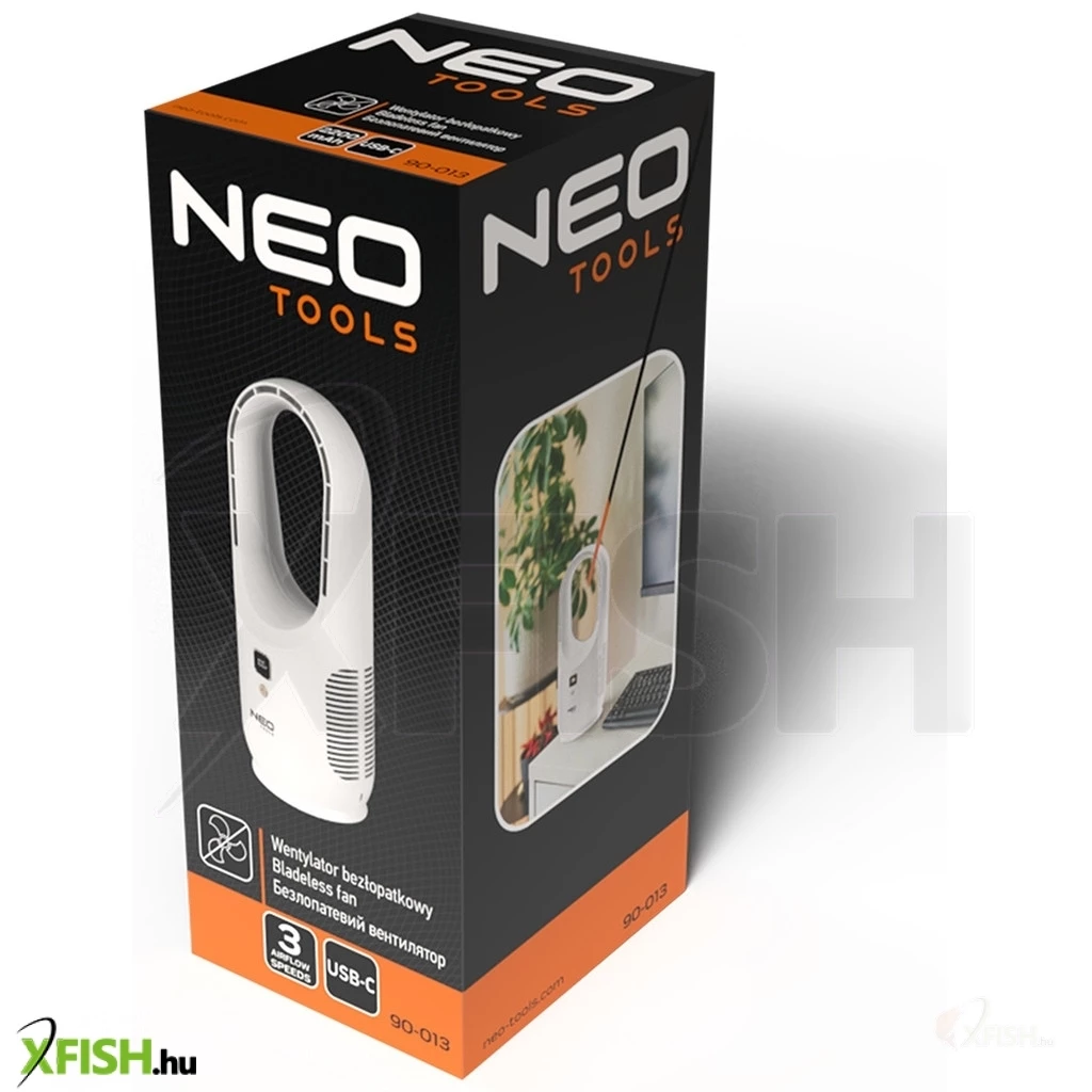 Neotools ventilátor, akkumulátoros, belső-rejtett ventilátorlapátok, 2200mah akku, 3 fokozat, 3-12 óra működési idő