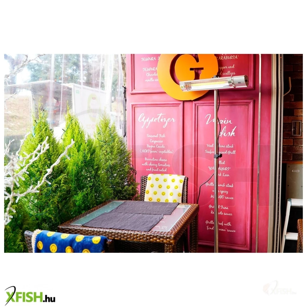 Ez az IP65-ös védettségi besorolással rendelkező hősugárzó kiválóan ellenáll az időjárás viszontagságainak, így biztonságosan használható kültéri területeken, például teraszokon vagy kertekben is. A két teljesítményszint – 1000 W és 2000 W – lehetővé teszi, hogy a fűtési intenzitást az igényekhez igazítsa, így mindig optimális hőmérsékletet biztosít a környezetében.