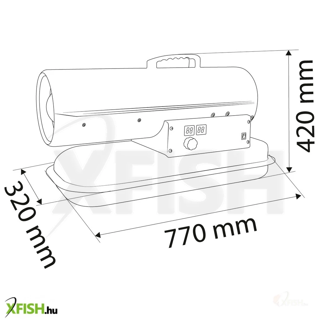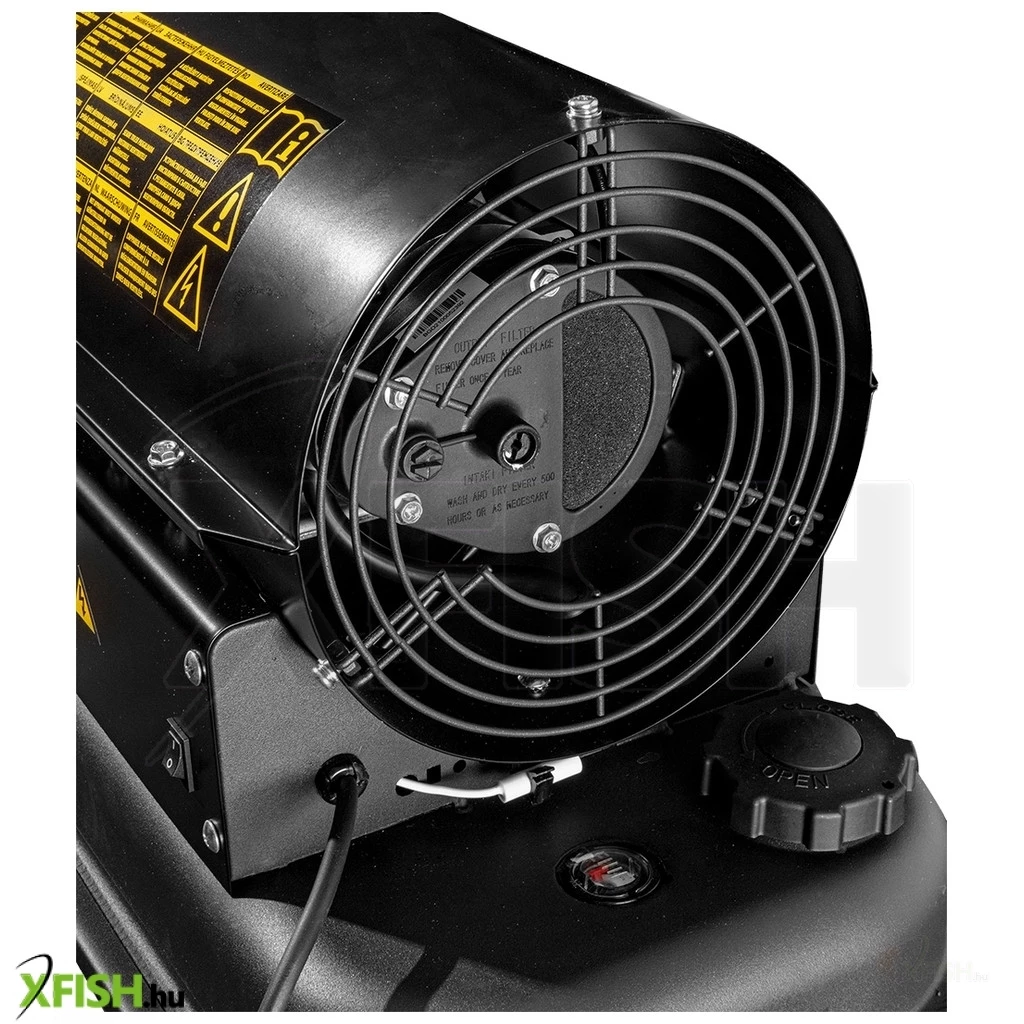 A termék különleges biztonsági jellemzőkkel is büszkélkedhet, mint például a lángőr, amely automatikusan lekapcsolja a készüléket, ha a tüzelőanyag elfogy, ezáltal megelőzve a nem kívánatos baleseteket vagy károkat. Az olajszintkijelző segítségével a tüzelőanyag mennyiségét könnyen nyomon követheti, így a felhasználó teljes kontrollt tarthat a fűtési folyamat felett. A termék szerves része továbbá egy kézi termosztát, mely lehetővé teszi a hőmérséklet egyszerű beállítását és az aktuális hőmérséklet kijelzését is. Az eszköz IPX4 védettségi osztályának köszönhetően csepergő esőben is biztonságosan használható, ami tovább bővíti alkalmazási lehetőségeit a szabadban történő munkavégzés során.