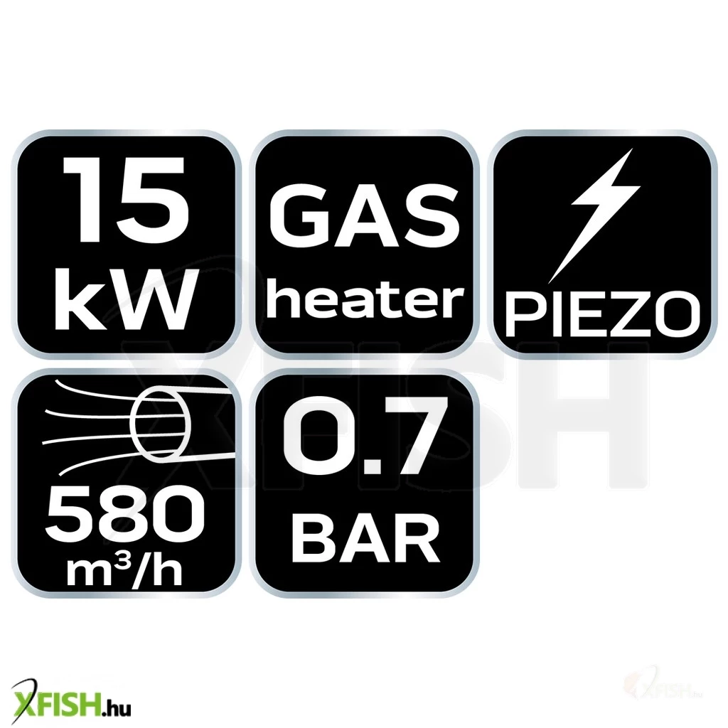 Ez a hőlégbefúvó piezoelektromos gyújtással rendelkezik, amely egyszerű és gyors indítást tesz lehetővé. A működéshez 0,7 bar nyomás szükséges, és a fűtőanyag-fogyasztása mindössze 1,09 kg/h, így gazdaságos megoldást kínál minden olyan helyzetben, ahol hatékony és gyors fűtés szükséges.