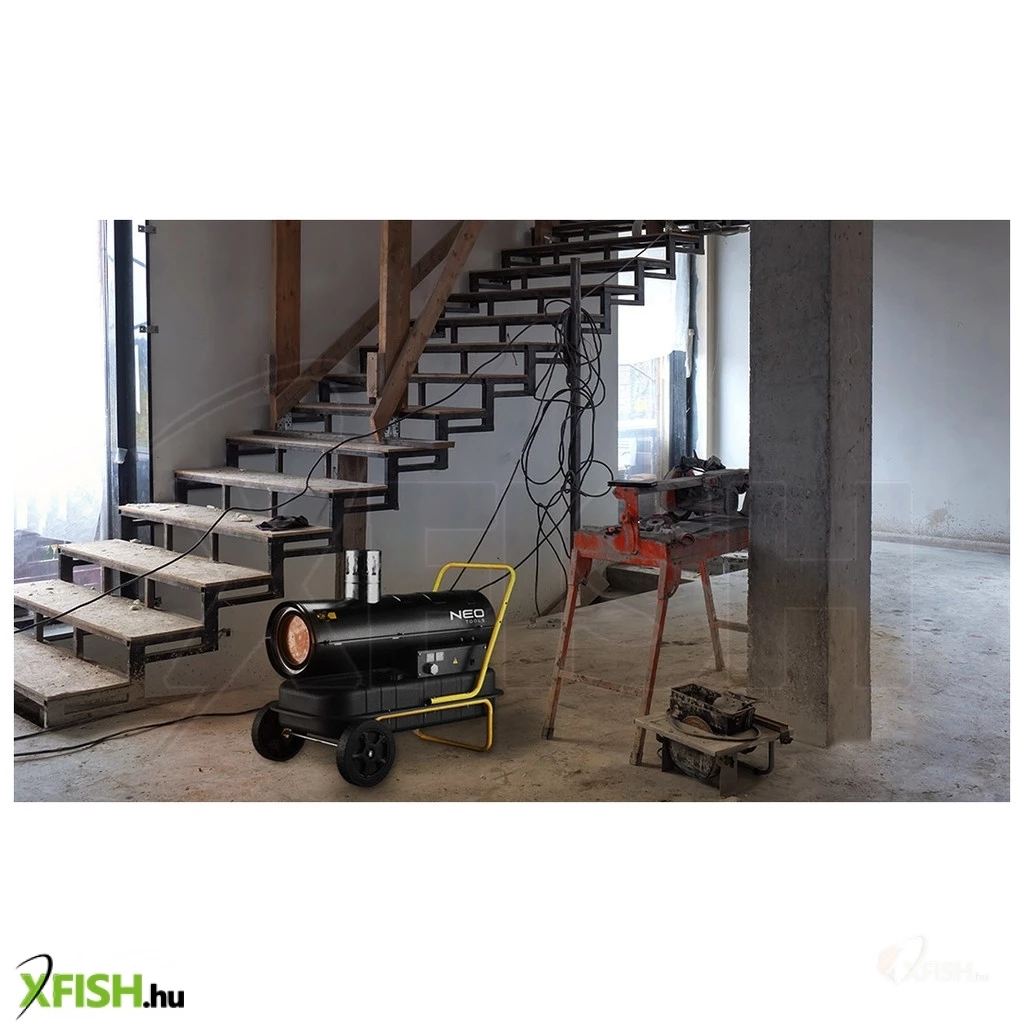 A Neotools gázolajos hőlégbefúvó egy kiemelkedően hatékony és robusztus hőforrás, amely ideális megoldást kínál számos fűtési igény kielégítésére, legyen szó akár műhelyekről, gyártócsarnokokról, nagy üzletekről, építkezésekről vagy garázsokról. Ennek a hordozható készüléknek a tervezésekor a mobilitás és a felhasználói kényelem került előtérbe, amelynek köszönhetően kényelmesen szállítható a helyszínek között kerekekkel ellátott kialakításának hála.