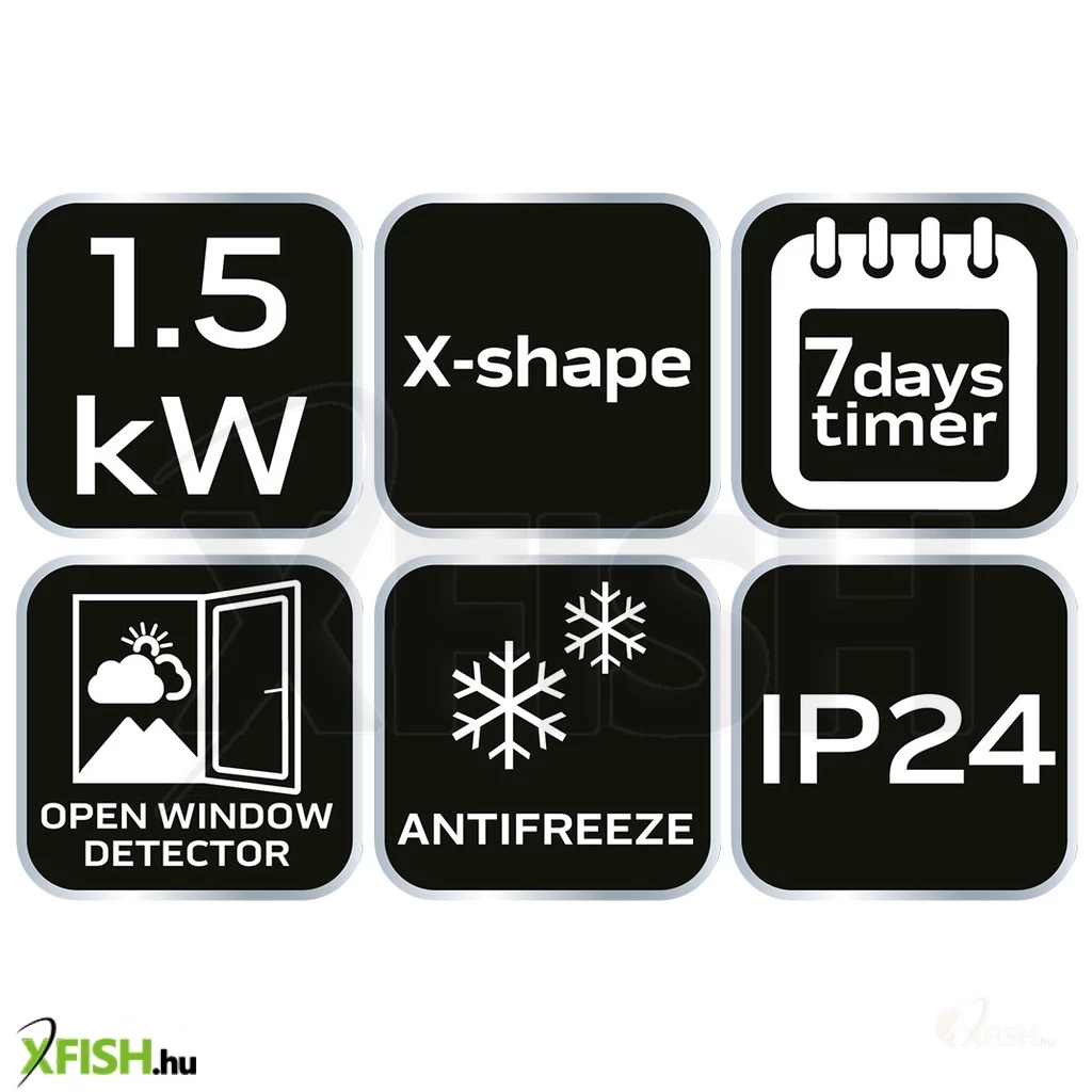Az fagyálló érzékelő fenntartja a helyiség minimális hőmérsékletét, míg a nyitott ablak érzékelő automatikusan csökkenti a fűtés intenzitását, ha nyitott ablakot érzékel, ezzel is energiát takarítva meg. Bármelyik helyiségben kényelmesen elhelyezhető, mivel a termékhez alumínium lábak és fali szerelőkészlet tartozik, lehetővé téve a szabadon állítható vagy falra szerelhető használati módot.