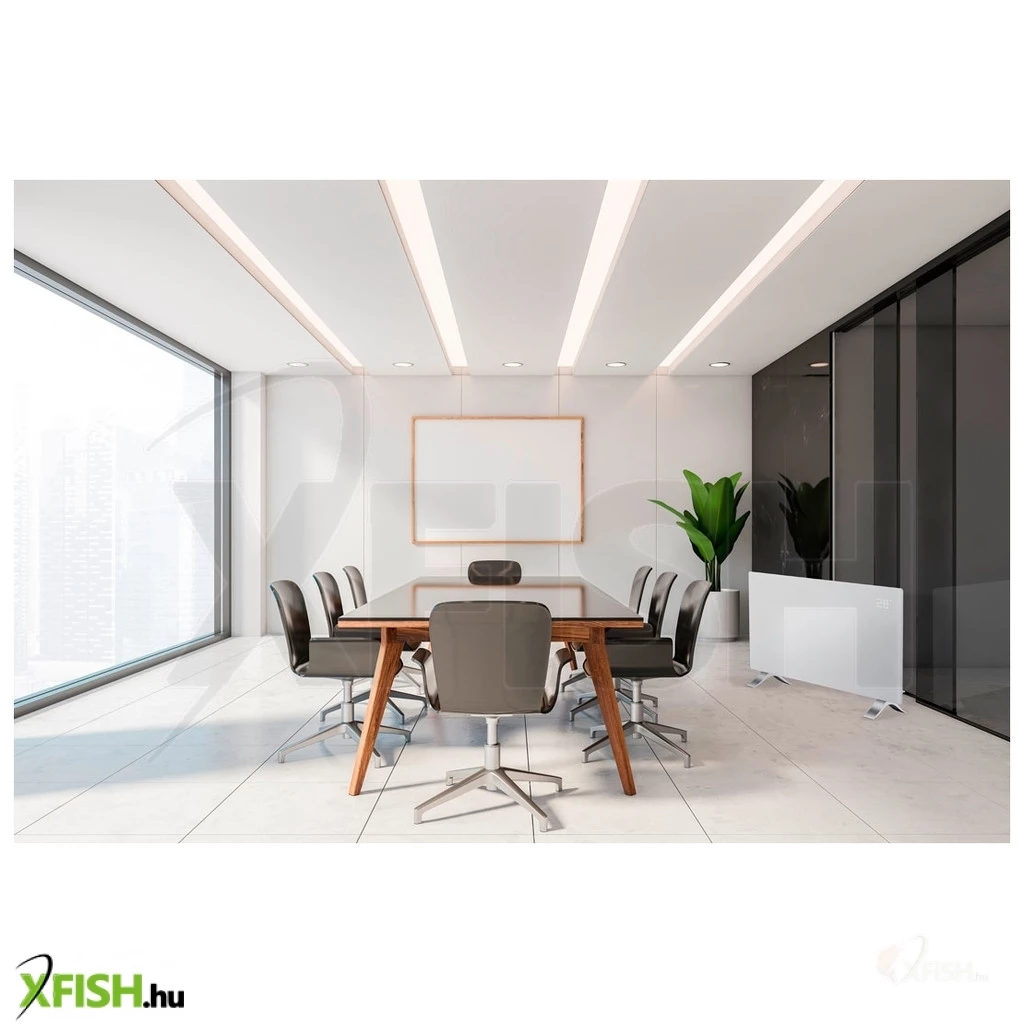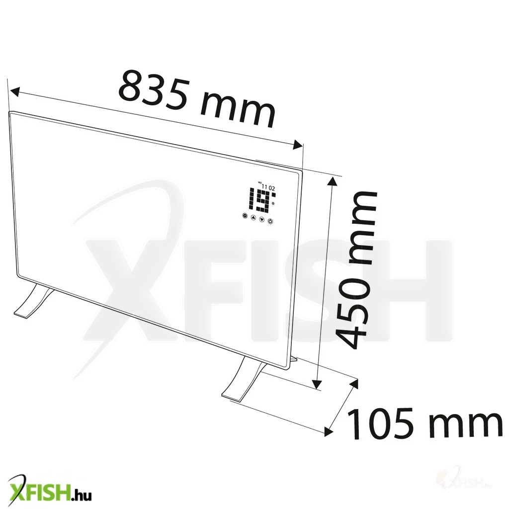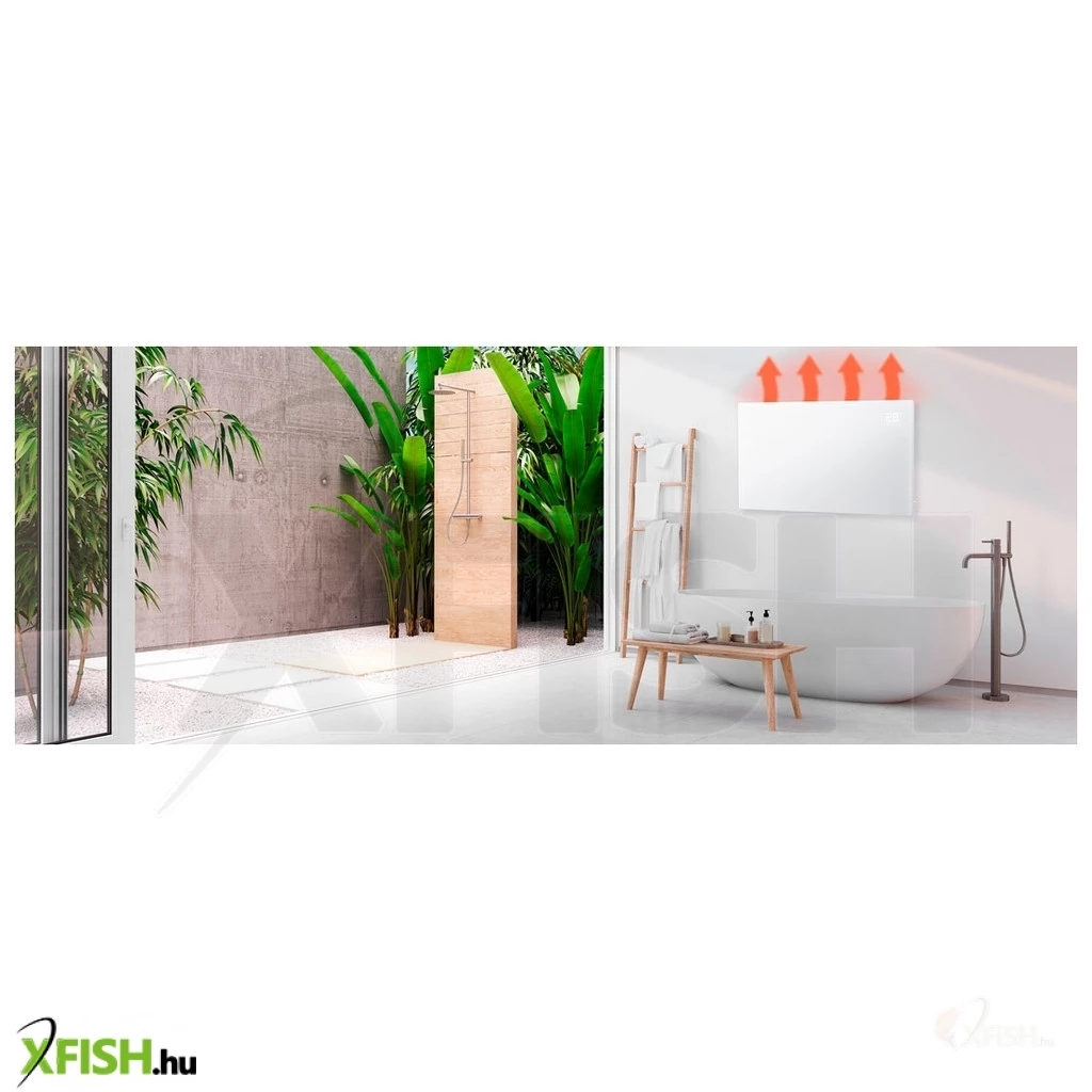 A fűtőpanel modern kialakítása eleganciát visz otthonába, különösen a nagyszilárdságú edzett üvegborításnak köszönhetően. Az új generációs alumínium fűtési rendszer biztosítja a csendes és szagtalan működést, elkerülve a gáz- és füstkibocsátás problémáit. A kezelése egyszerű és intuitív a kiegészítő LED képernyőn keresztül, amely lehetővé teszi az egyszerű és pontos hőmérséklet-szabályozást 5°C és 45°C között.