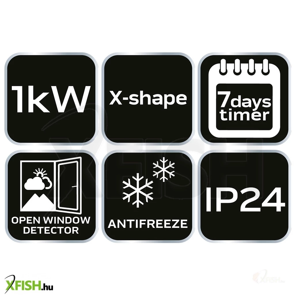 A távirányító és az érintőképernyős vezérlés lehetőséget nyújt arra, hogy a heti programot az Ön igényeinek megfelelően állítsa be, ezáltal maximalizálva az energiahatékonyságot és kényelmet. Az átgondolt biztonsági funkciók, mint a túlmelegedés elleni védelem, a felborulás elleni védelem és a gyermekbiztos funkciók, garantálják, hogy a használat biztonságos és megbízható legyen. Az elfagyásgátló érzékelő és a nyitott ablak érzékelő további védelmet nyújtanak, fenntartva a minimális hőmérsékletet és észlelve, ha egy ablak nyitva marad, így optimalizálva az energiatakarékosságot.