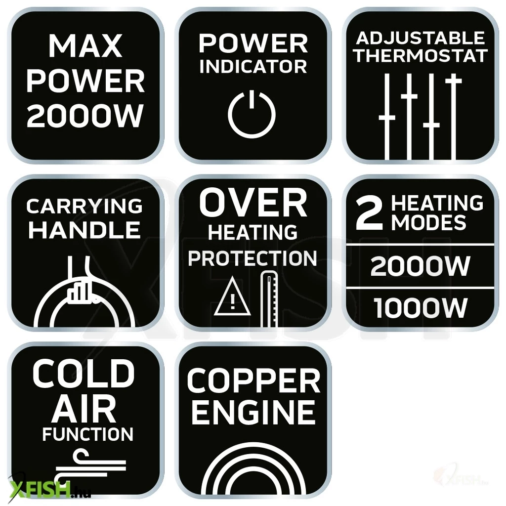 - Teljesítmény: 1000 W/2000 W