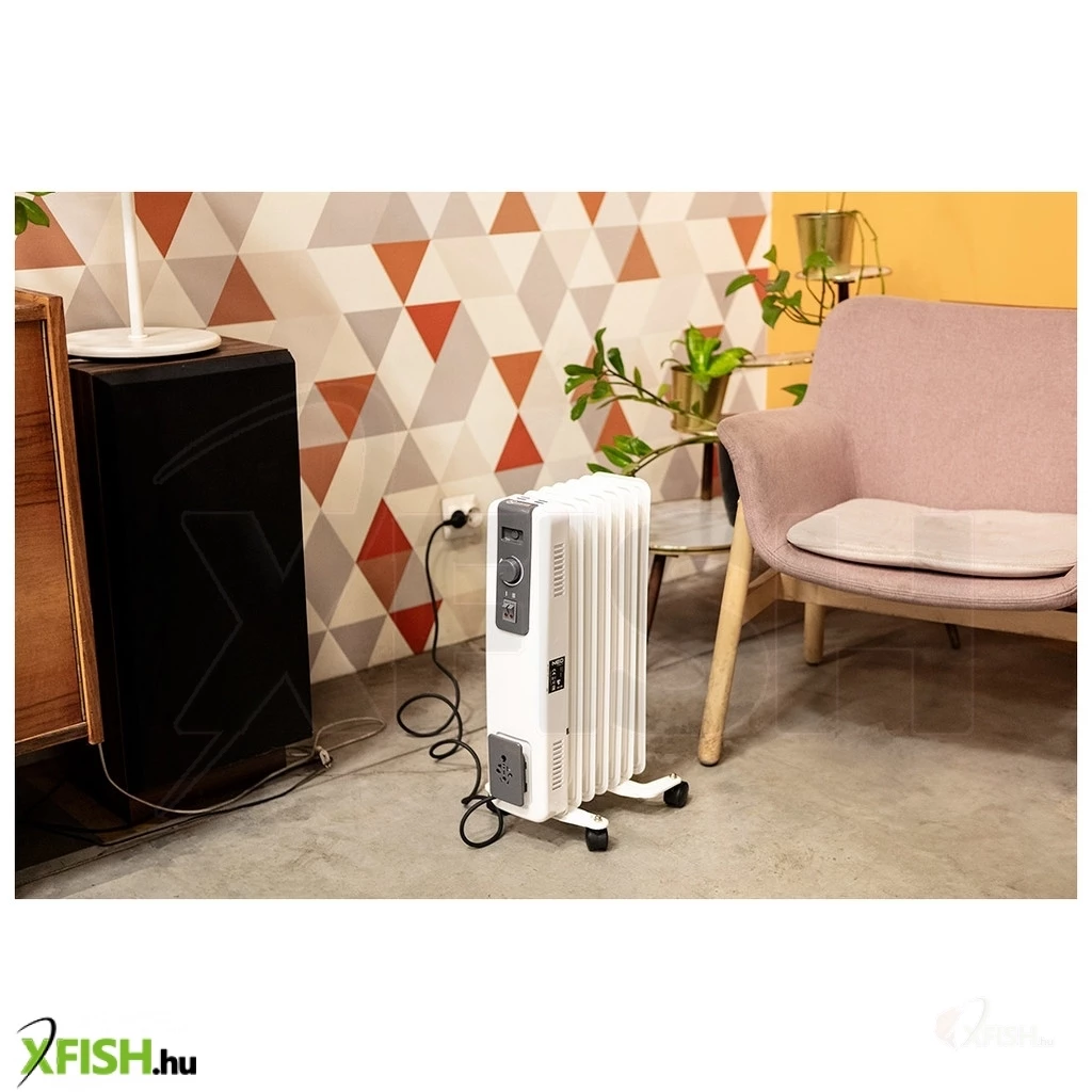 A radiátor fő alkotóelemei az olajjal töltött bordák, amelyek biztosítják a hosszú távú hőleadást a felfűtés után is, így csökkentve az energiafelhasználást. Az eszköz halk működésével tökéletes megoldást nyújt olyan környezetekben is, ahol fontos a csendes üzemelés, például hálószobákban vagy irodákban. Könnyen kezelhető vezérlőpanelje egyszerű beállítást tesz lehetővé, hogy gyorsan és kényelmesen alakíthassa ki az ideális hőmérsékletet.