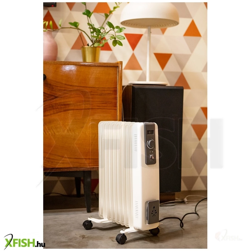 A 9 darab, 120 mm x 500 mm méretű bordája biztosítja az egyenletes hőeloszlást a helyiségben, így minden sarokban kellemes meleget garantál. Az olajradiátor a 230 V, 50 Hz-es tápfeszültségen működik, ami otthoni környezetben is könnyen hozzáférhető, így nem szükséges különös előkészületeket tenni a használatához. A beépített be-/kikapcsoló és a jelzőfény segíti a készülék egyszerű kezelését, míg az állítható termosztát lehetővé teszi a kívánt hőmérséklet pontos beállítását, így még inkább személyes lehet a felhasználói élmény.