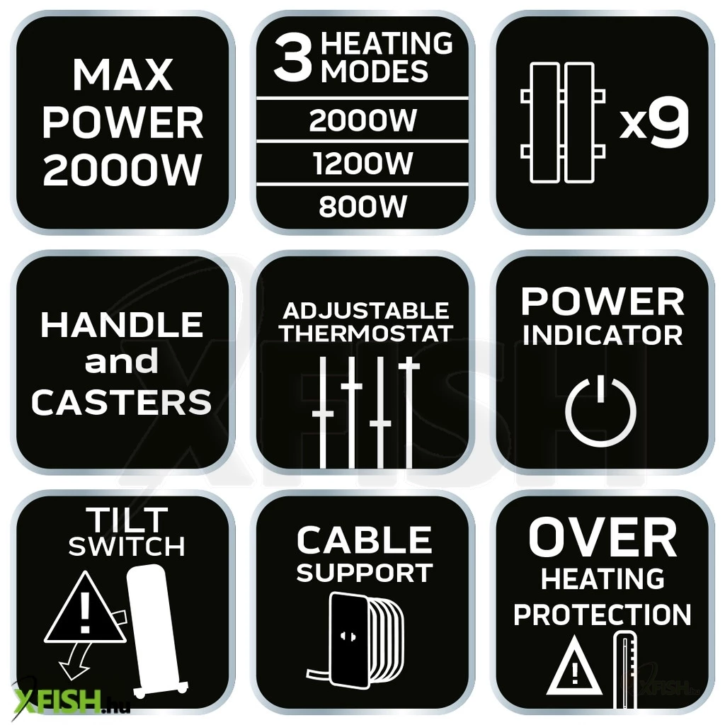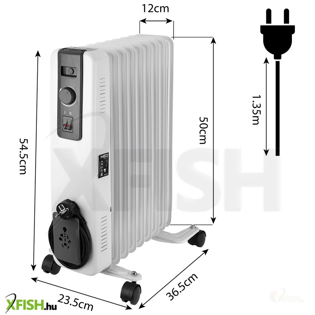 Neotools olajradiátor, 9 bordás, 3 fokozatú, 800/1200/2000w