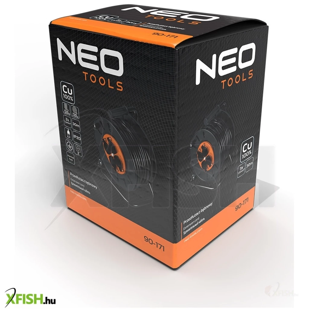 KategóriákKategóriákVillamosság Kábeldob Neotools kábeldob, hosszabbító, 30m/3x1,5mm2 réz kábel, 230v, ip20, hőkioldó, műanyag dob, fém keret