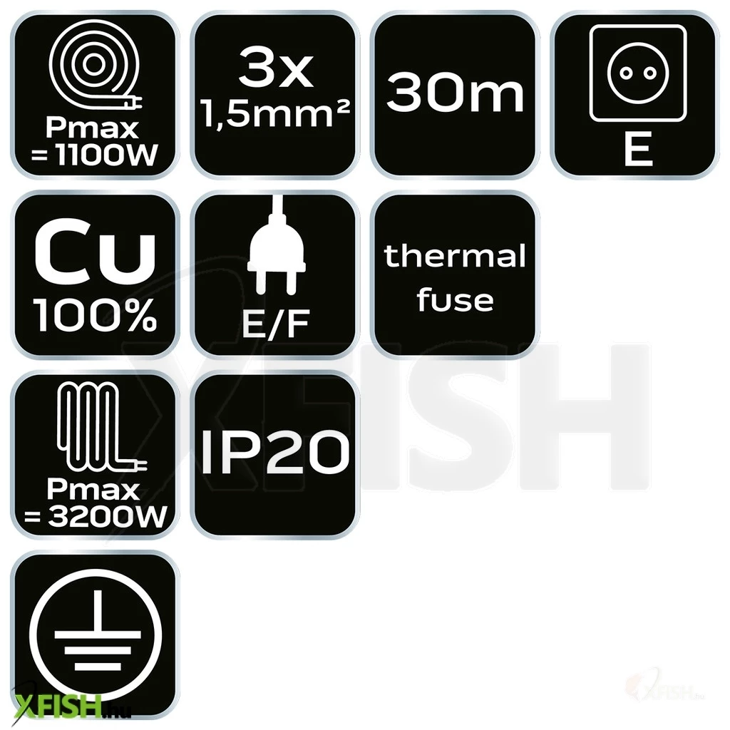 A termék beépített hőkioldóval és 16A 230V-os szabvánnyal rendelkezik, amely megvédi a csatlakoztatott készülékeket a túlterheléstől és a túlmelegedéstől. Az IP20 védelmi osztály azt jelzi, hogy a termék beltéri használatra alkalmas, így a biztonság minden tekintetben garantált. A 100% rézhuzal felhasználása maximális hatékonyságot és minimális energiaveszteséget biztosít, miközben a gumírozott fogantyú és a műanyagdobbal ellátott fémkeret hosszú távú tartósságot és könnyű kezelhetőséget tesz lehetővé.