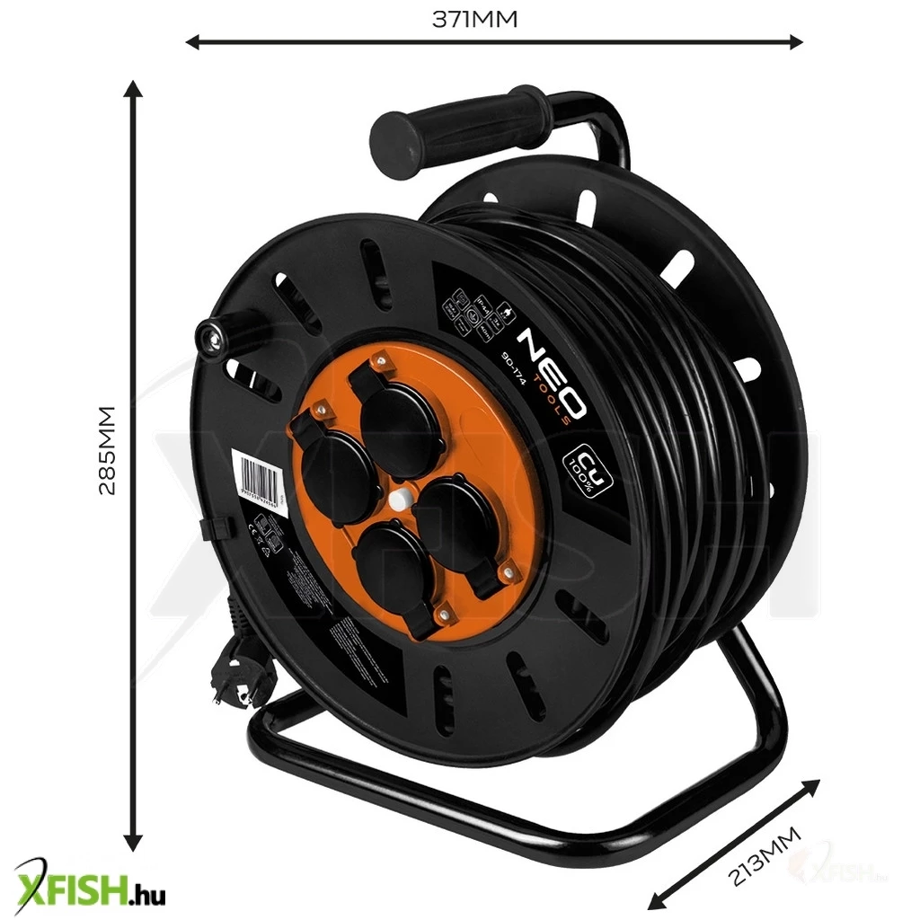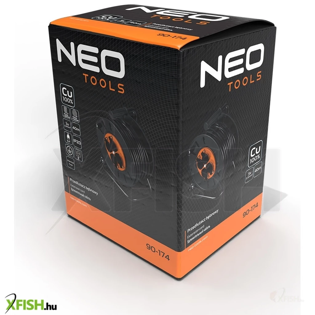 KategóriákKategóriákVillamosság Kábeldob Neotools kábeldob, hosszabbító, 40m/3x2,5mm2 réz kábel, 230v, ip20, hőkioldó, műanyag dob, fém keret
