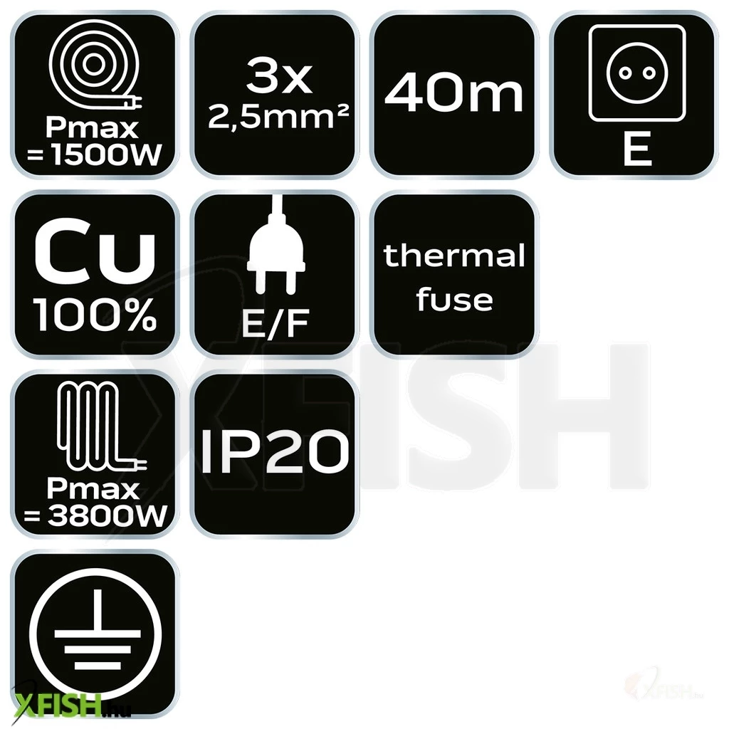 A kábel 3 x 2,5 mm² keresztmetszetű, 100%-ban rézből készült vezetékekkel rendelkezik, így garantált az áramellátás hatékonysága és az alacsony energiaveszteség. Ezenkívül a kábelkapacitás lehetővé teszi, hogy akár 3600 watt teljesítményű eszközök is gond nélkül működjenek róla. A beépített hőkioldó biztonsági funkció fontos szempont minden horgásznak, hiszen automatikusan lekapcsolja az áramellátást túlterhelés vagy túlmelegedés esetén, ezzel védve a csatlakoztatott eszközöket és csökkentve a potenciális meghibásodás kockázatát.