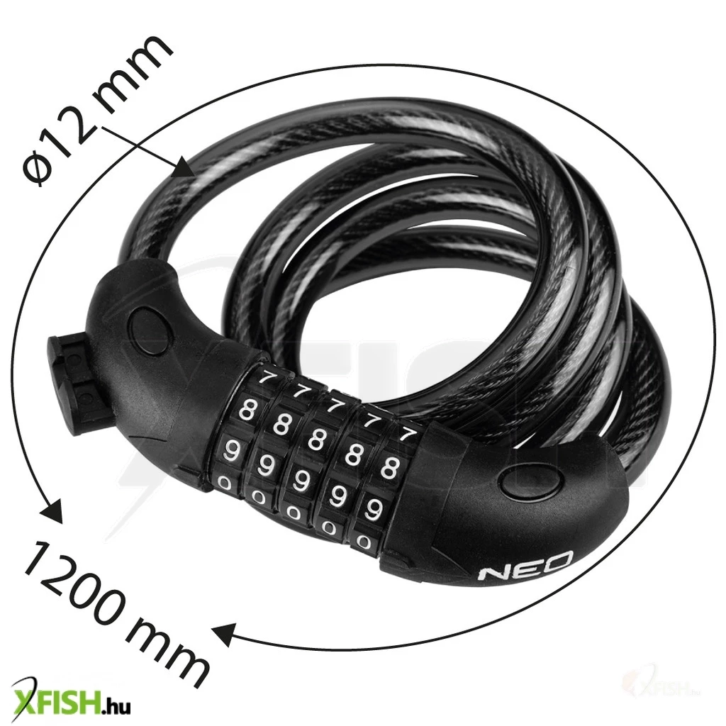 Neotools kerékpárzár, számzáras, 120cm, 12mm, vázra rögzíthető
