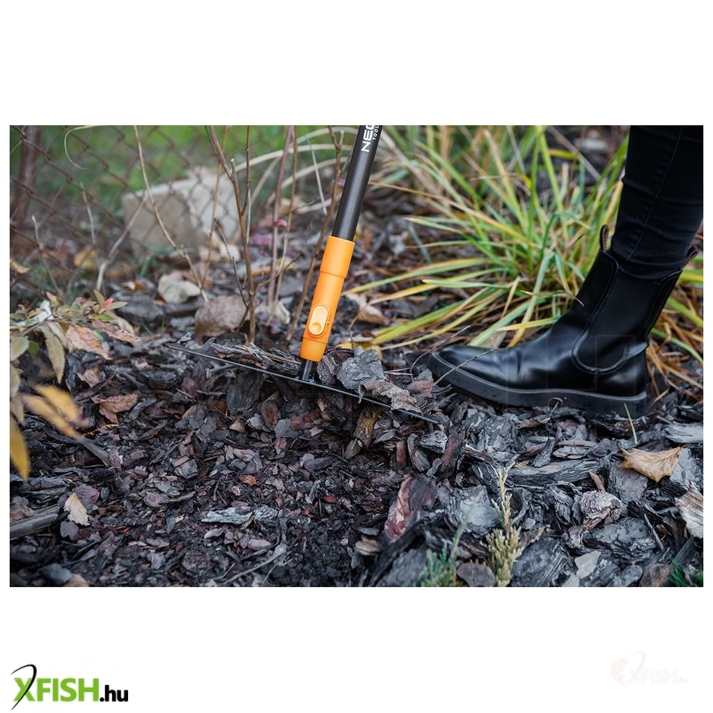A 350 mm-es fejméret optimális szélességet biztosít, így lehetővé teszi a gyors és hatékony munkát, míg a 12 fogának kialakítása segíti az egyenletes talajmegmunkálást. A Neotools gereblye azon tulajdonságával emelkedik ki a hagyományos gereblyék sorából, hogy a Neo Click System technológiának köszönhetően könnyen és gyorsan csatlakoztatható a kompatibilis nyelekhez. Ez a rendszer rugalmasságot és kényelmet biztosít a felhasználóknak, hiszen a különböző gereblyefejek vagy más kerti eszközök közötti csere egyszerűen megoldható.