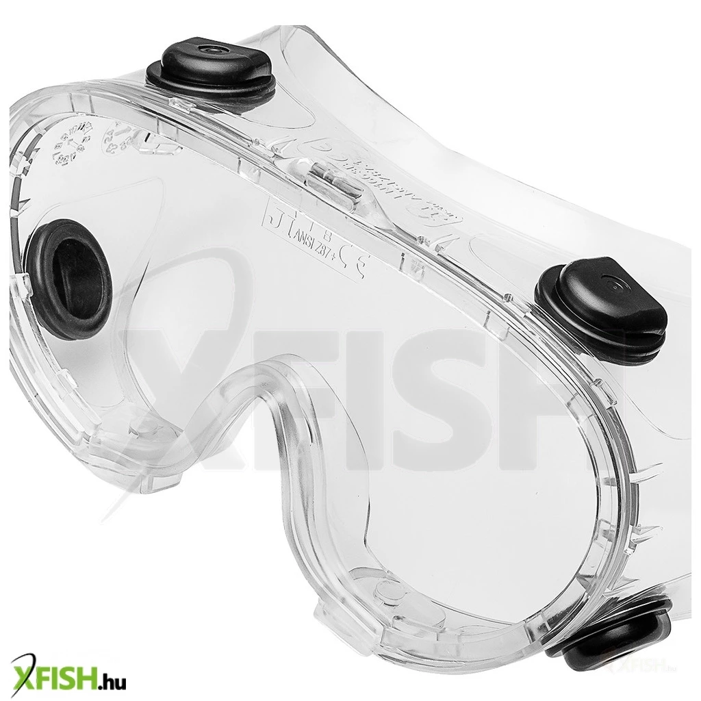 A termék átlátszó polikarbonát védőlencséi nemcsak védelmet nyújtanak, de lehetővé teszik a tiszta és zavartalan látást is. Az optikai osztály 1-es jelölése garantálja, hogy a szemüveg folyamatosan viselhető, anélkül, hogy torzítaná a látást. A védőlencsék anyaga erős és tartós, míg a gumipántos rögzítés biztosítja a kényelmes és stabil viseletet, így a szemüveg nem mozdul el használat közben.
