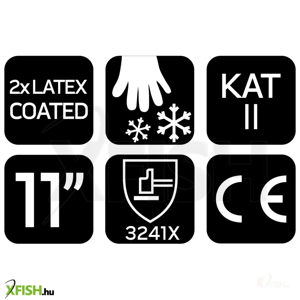 A kesztyű poliészter alapanyaga könnyű és strapabíró, így hosszú ideig hűséges társa marad a természet szerelmeseinek. A dupla latex bevonat különösen hatékony védelmet biztosít a víz és a hideg ellen, így a kezek szárazak és melegek maradnak még a legzordabb körülmények között is.