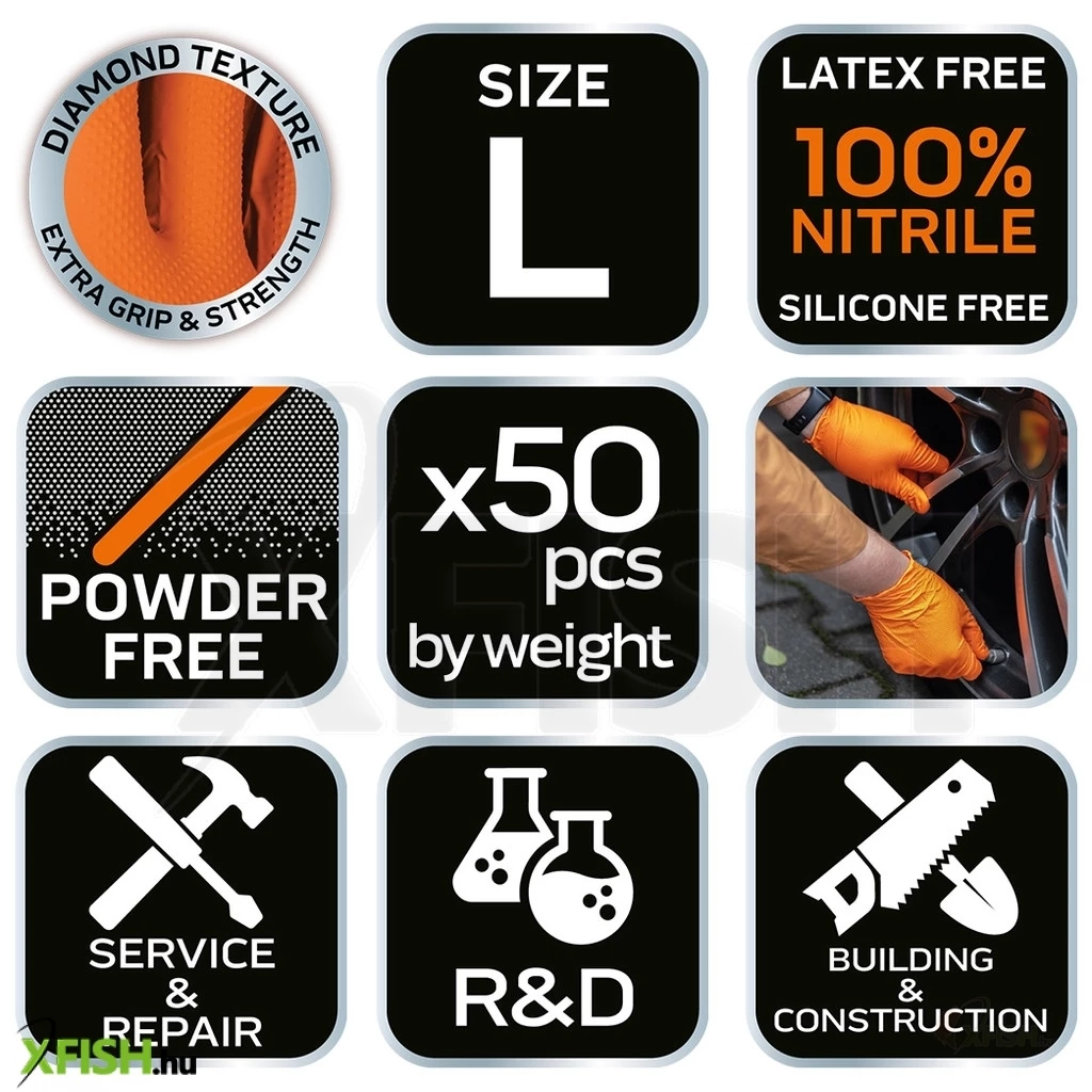 A kesztyű mérete és passzolása is fontos szempont, a L méret tökéletes illeszkedést biztosít széleskörűen, kényelmesen simulva a kézre. A praktikus csomagolásban 50 darab található, amely hosszú távú átfogó használatot tesz lehetővé, így bármikor kéznél lesz, amikor szüksége van rá.