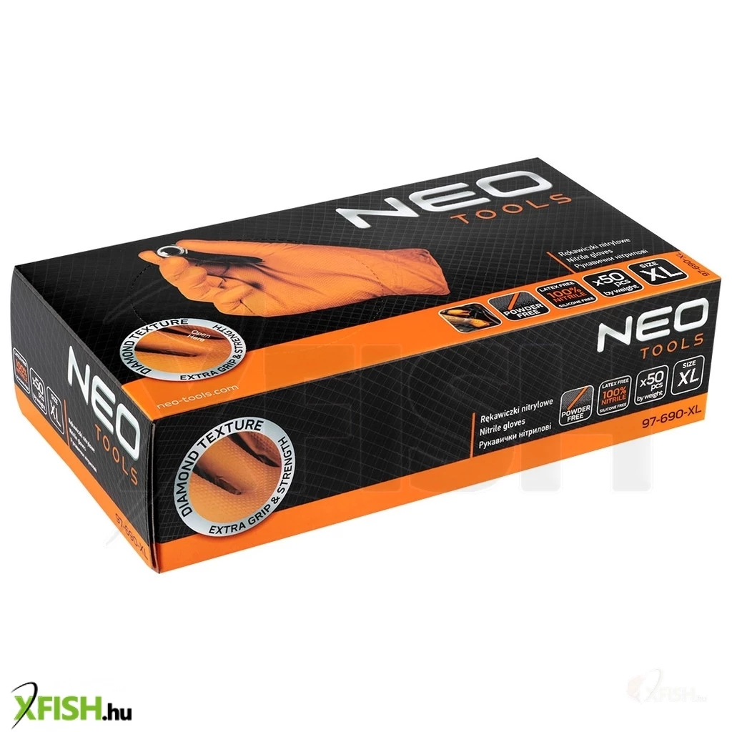 Neotools munkakesztyű, perforált nitril, narancssárga, 50db, XL