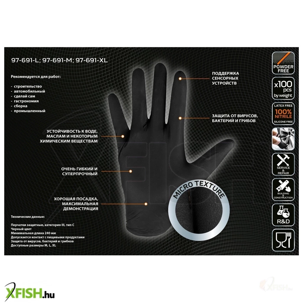 A Neotools perforált nitril munkakesztyű, fekete színben kapható, amely kiváló választás azok számára, akik professzionális védőfelszerelést keresnek az igényes munkakörülményekhez. Nitril anyagának köszönhetően ezek a kesztyűk rendkívül ellenállóak a szakadással és a lyukasztással szemben, ami hosszú élettartamot biztosít számukra. A kesztyű mikrotexturált felülete kiváló tapadást biztosít, így a precíz munkavégzést is elősegíti. Az ergonomikus kialakítás csökkenti a kéz terhelését, növelve ezáltal a felhasználói kényelmet és biztonságot.