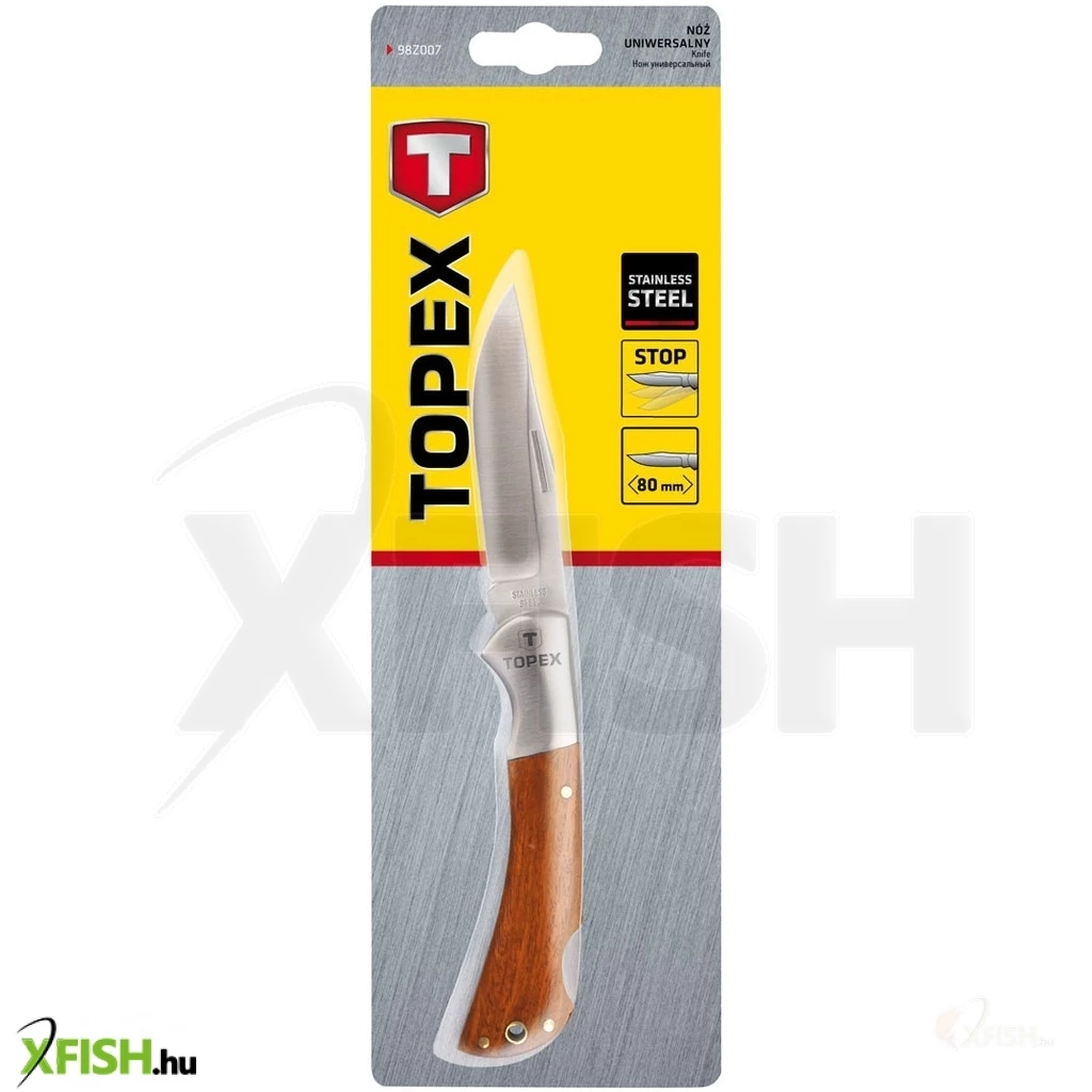Univerzális kés, penge 80 mm, összecsukható, rozsdamentes penge és markolat, pengeretesz, faborítás