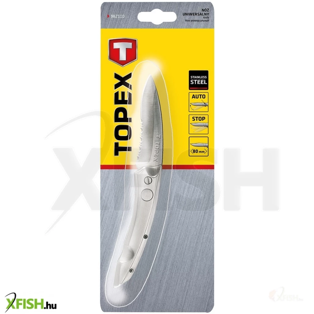 Univerzális kés, penge 80 mm, rugós, rozsdamentes penge, rugós pengekiemelő mechanizmus, fém markolat, pengeretesz, övcsipesz
