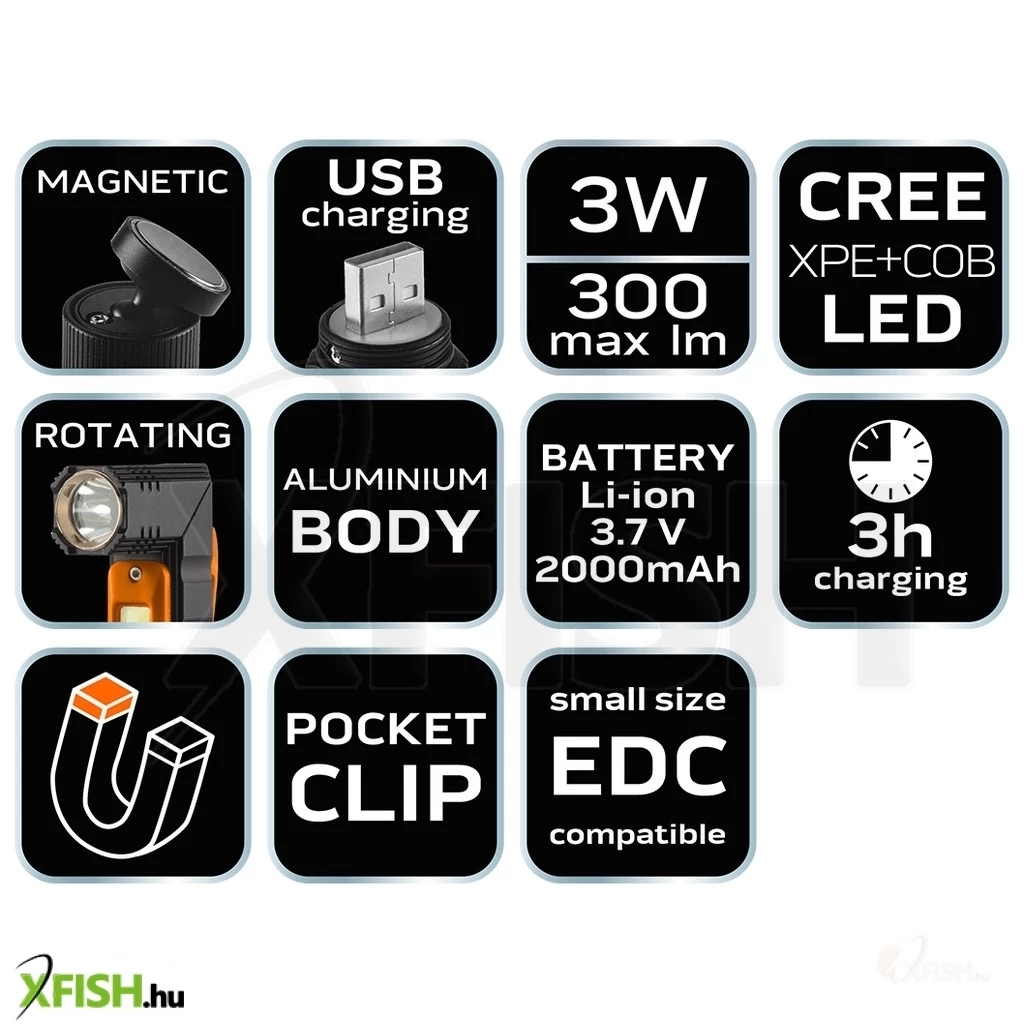 KategóriákKategóriákVilágítás Kézilámpa Neotools zseblámpa, tölthető, 2 funkciós USB 300lum, creexpe + cob led, 3w