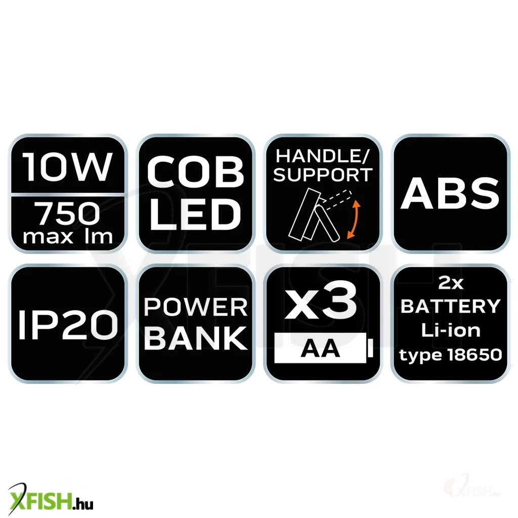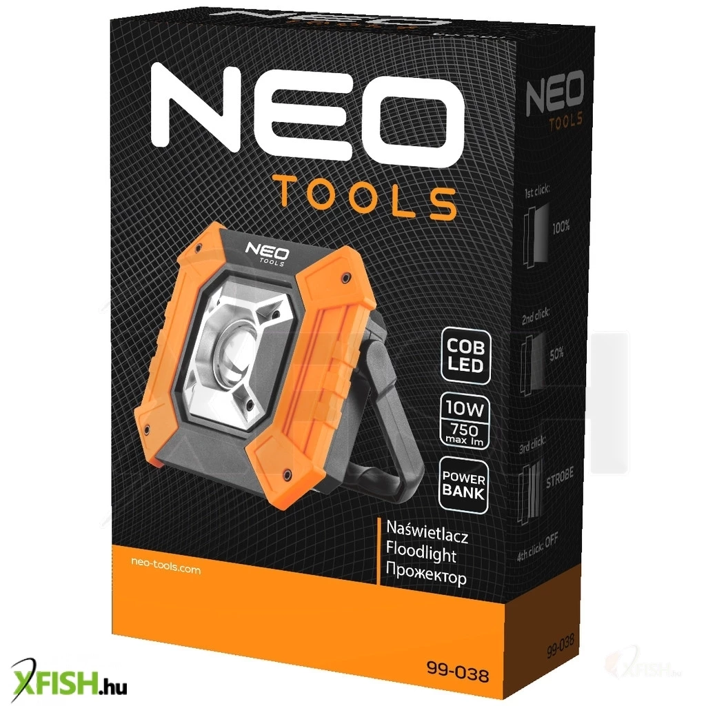Neotools reflektor, talpas, elemes 3xaa, cob LED 750lum, powerbank funkció, 10w