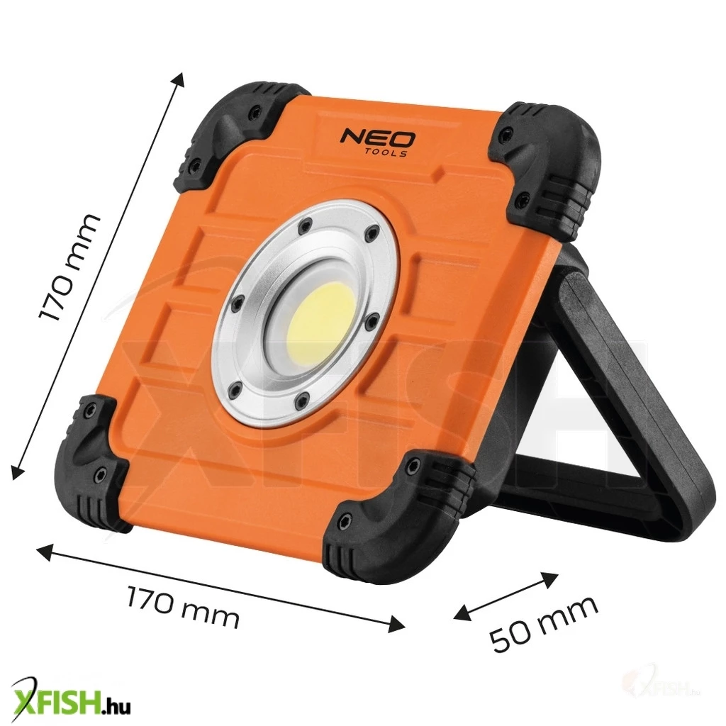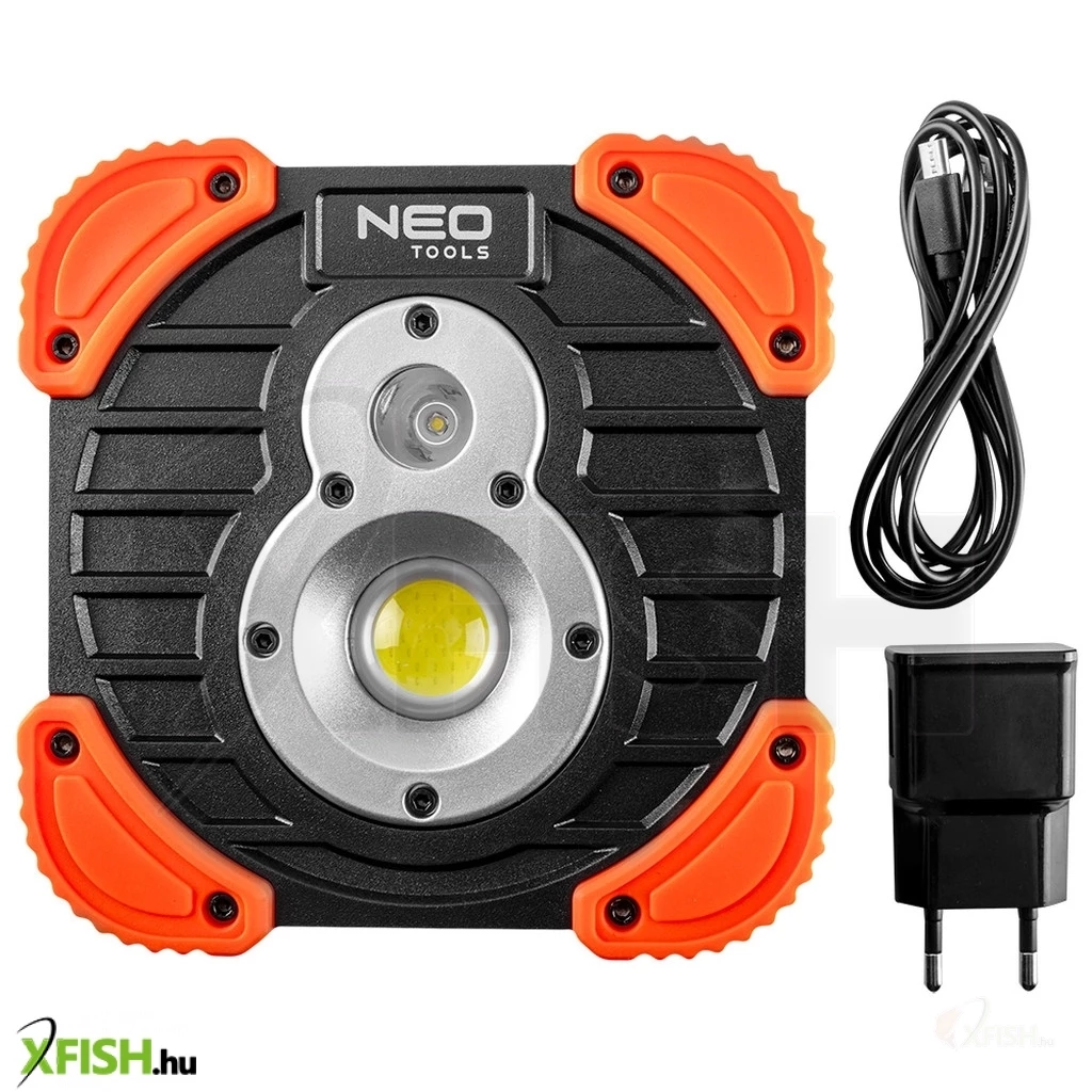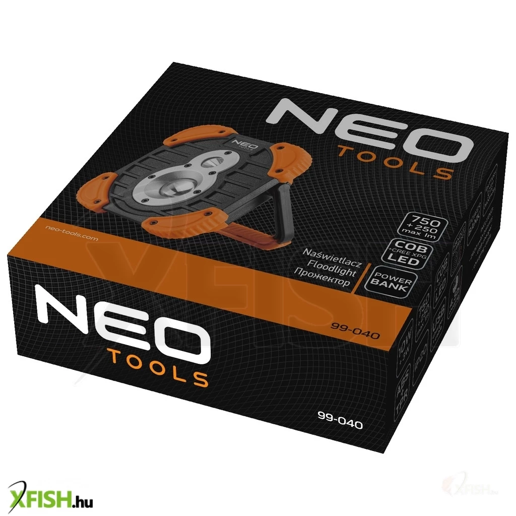 Neotools akkus reflektor, talpas, tölthető, 750 + 250lum cob led, powerbank funkció, 10w