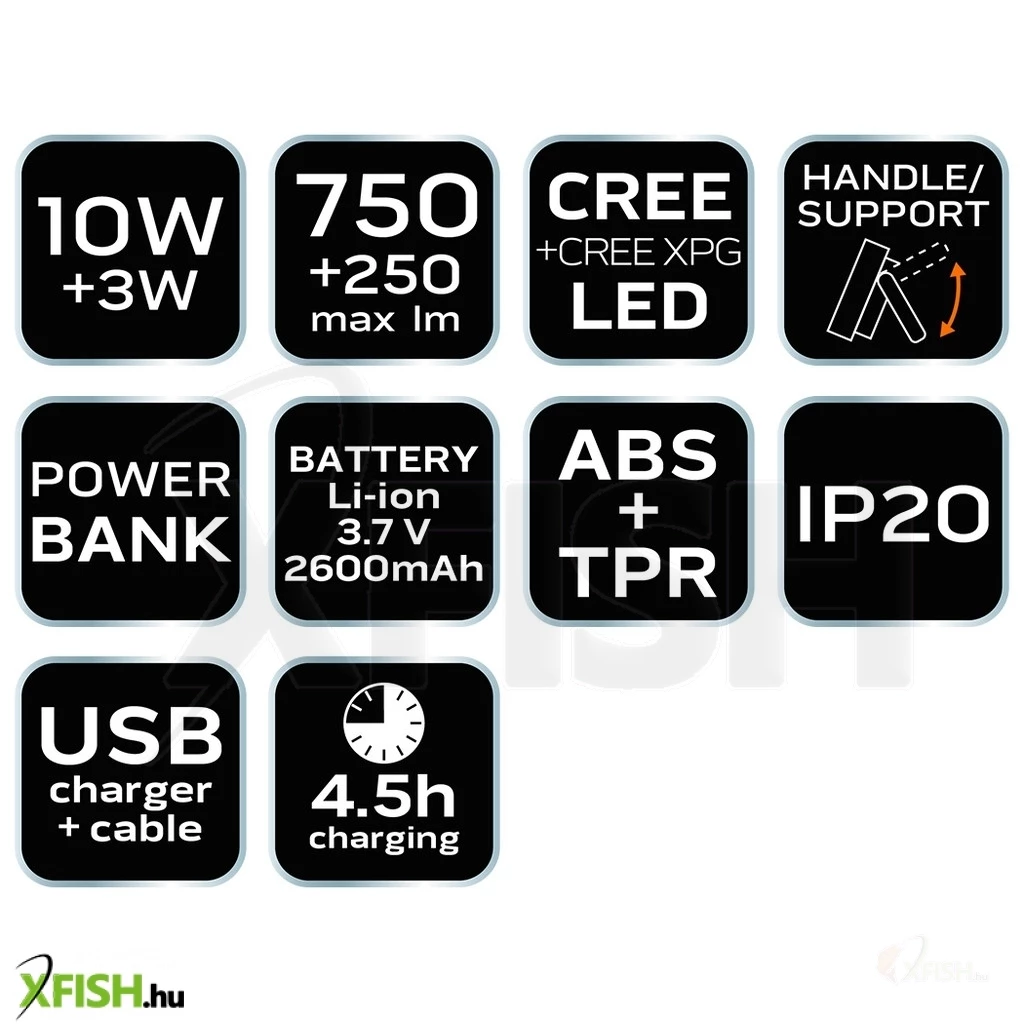A Neotools akkus reflektor egy kiváló választás minden horgászat kedvelőjének, aki megbízható és sokoldalú világítási megoldást keres. Ez a tölthető LED reflektor innovatív COB LED technológiával van felszerelve, amelynek köszönhetően rendkívüli 750 lumen + 250 lumen, vagyis összesen akár 1000 lumen fényerőt biztosít. Az eszköz 10W + 3W teljesítményével képes megfelelni a legkülönfélébb világítási igényeknek.