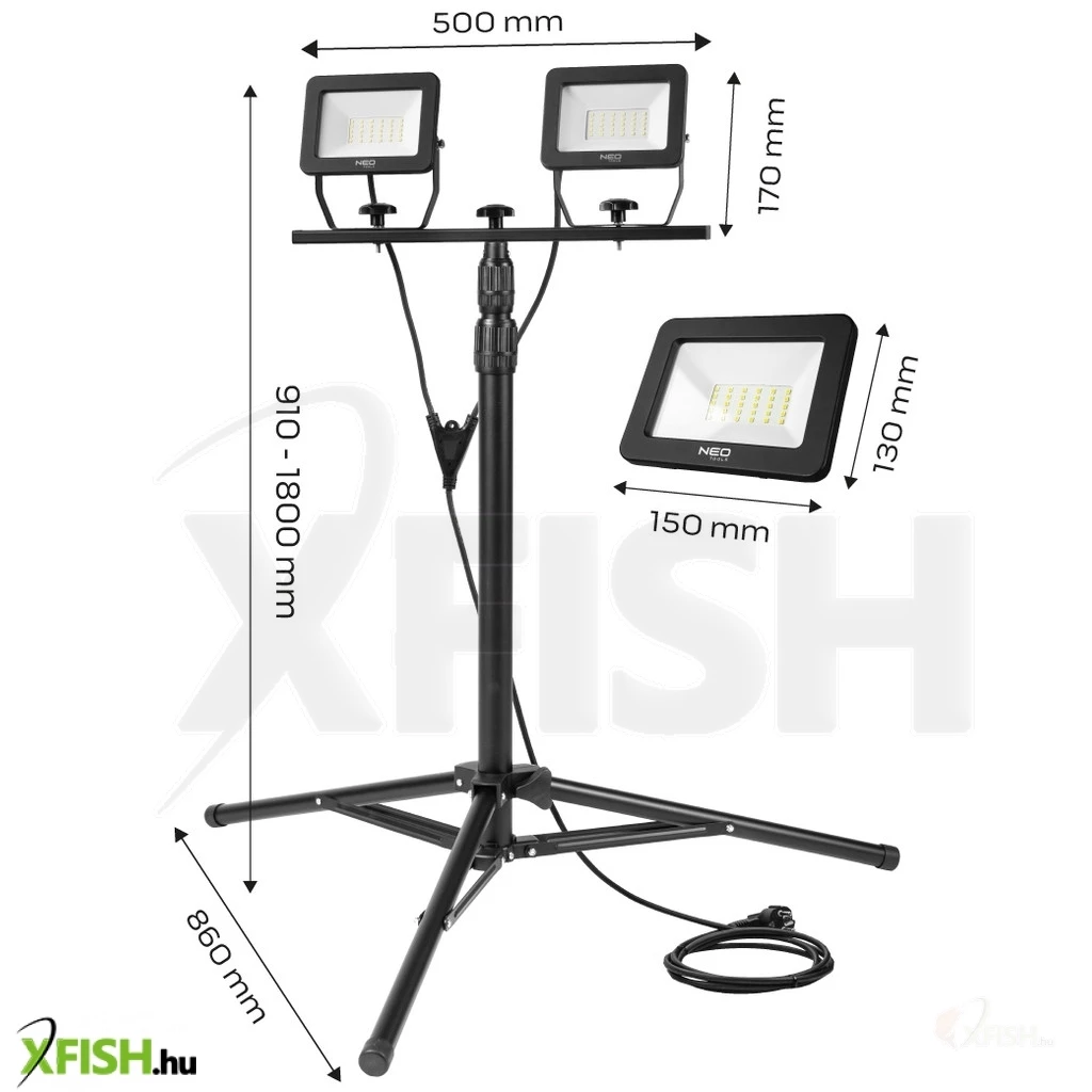 Neotools reflektor, állványos 230v/2x30w, 5400lum, smd led, max.1.8m
