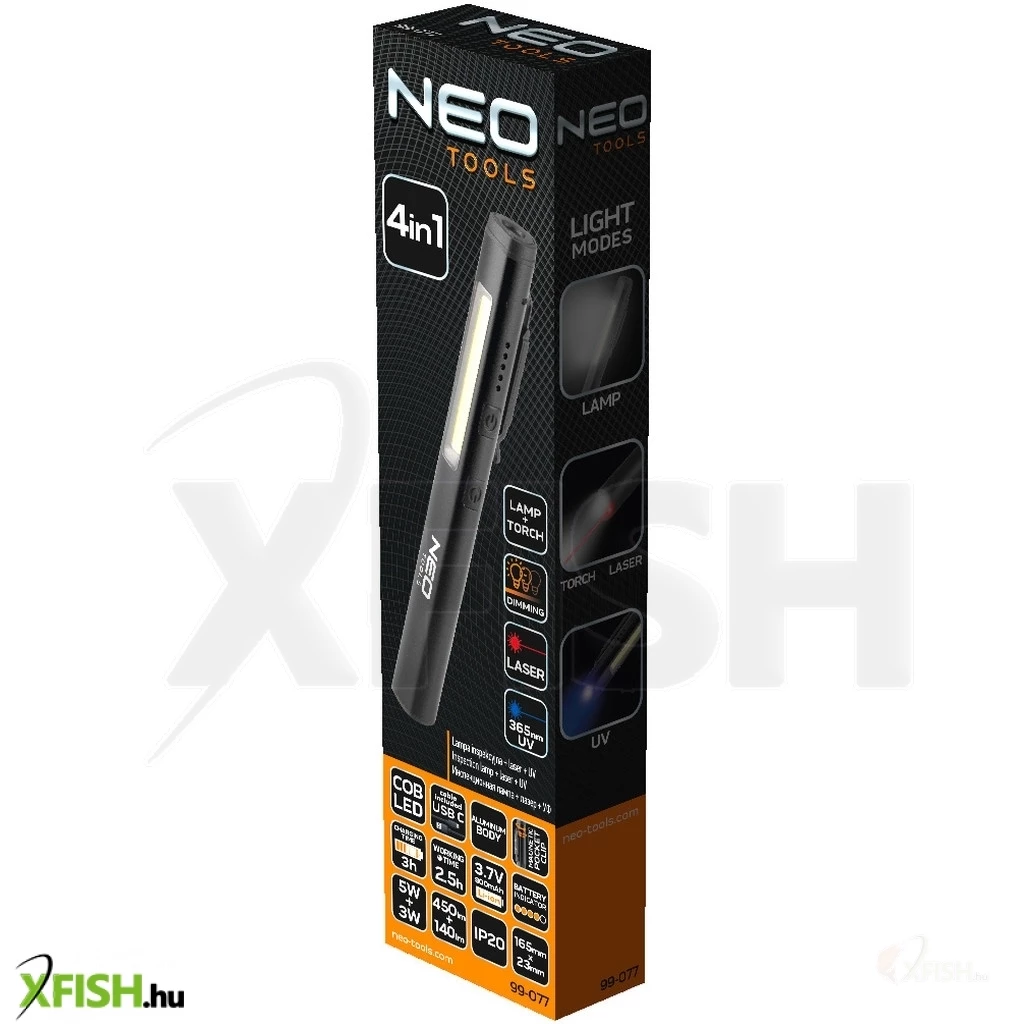 A Neotools akkus műhely-vizsgálólámpa, lézer, uv, tölthető, 450lum cob led, 10w készletinformációihoz
