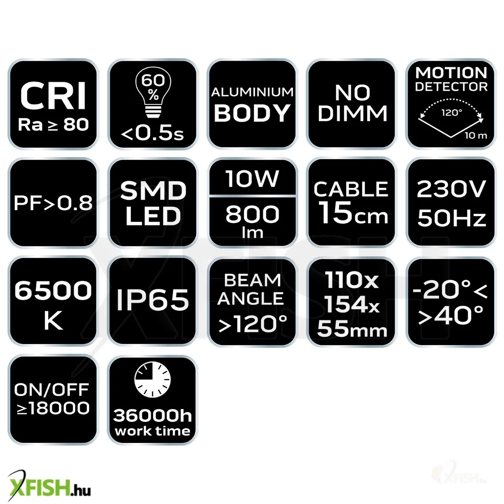 Neotools reflektor, mozgásérzékelős, 230v/10w, 800lum, smd LED