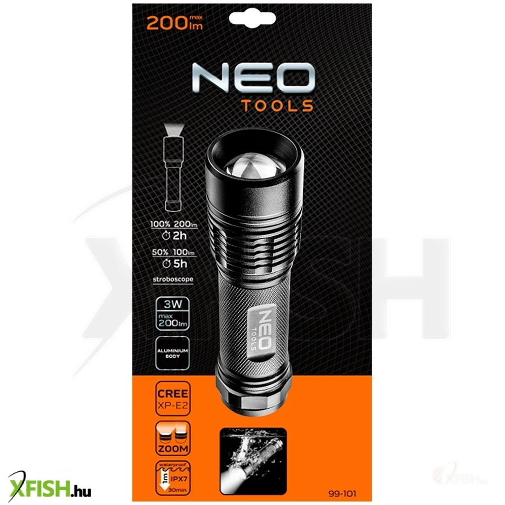 Neotools alumínium zseblámpa 200 lum, fókuszálható, ipx7, 3xaaa