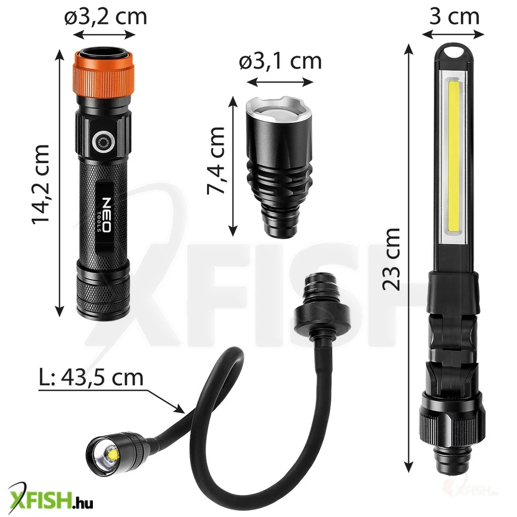 Neotools akkus 3az1-ben vizsgálólámpa, tölthető, 350lum cob led, 3w, ip44