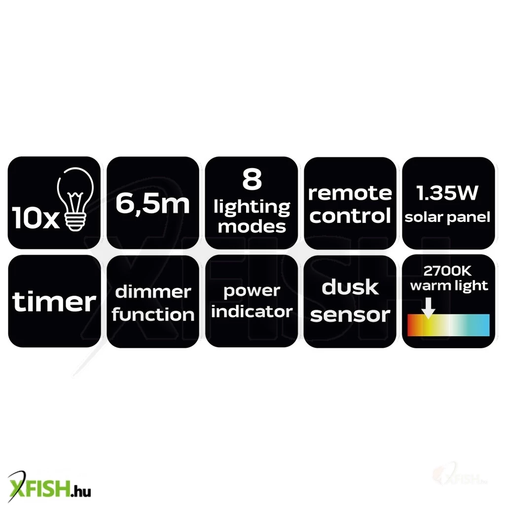 KategóriákKategóriákVilágítás Dekorációs világítás Neotools kerti fényfűzér, napelemes, 6,5m, 10db led, távirányító