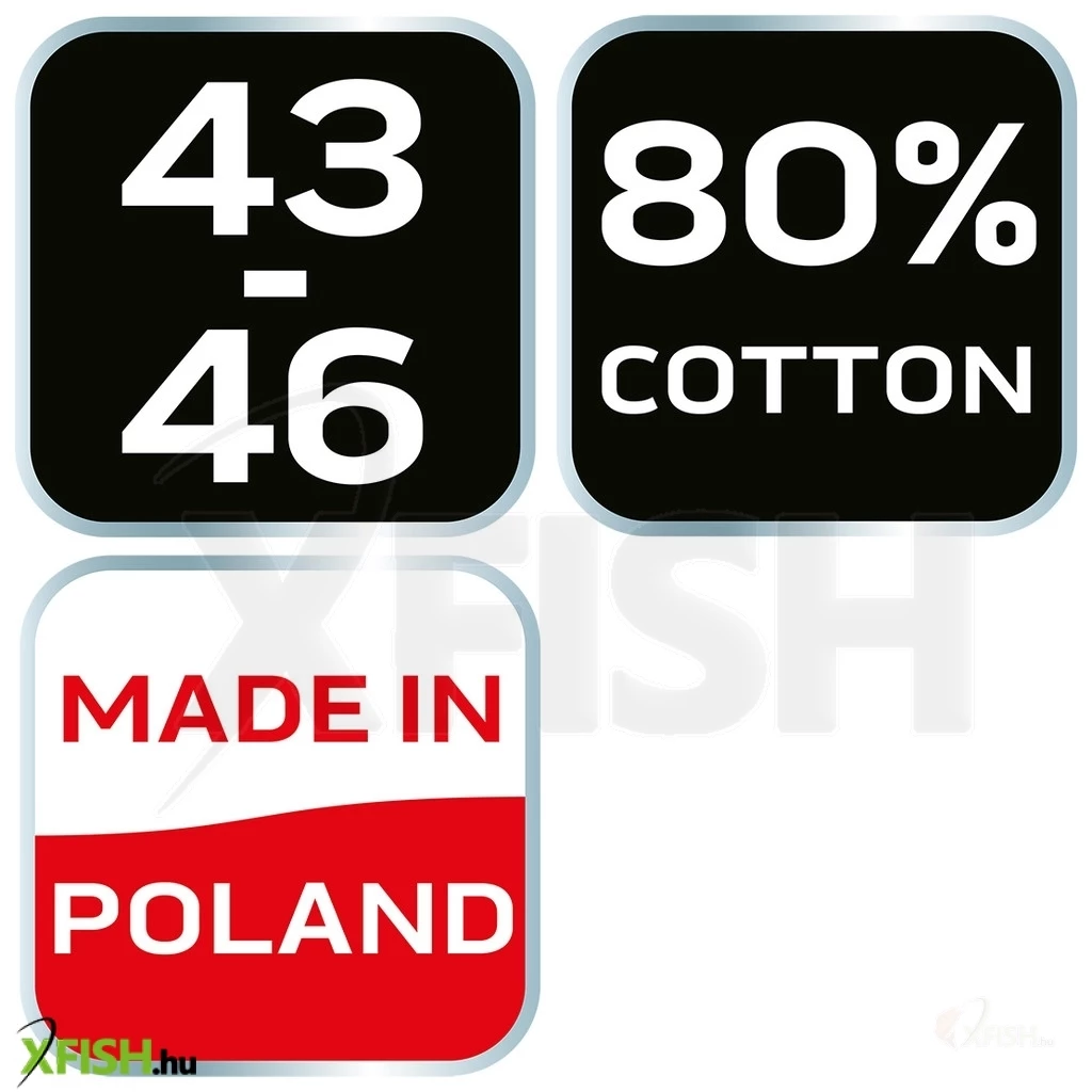 A pamut és poliamid párosítása biztosítja a légáteresztést és komfortérzetet, míg az elasztánnak köszönhetően a rugalmas kialakítás nem szorítja el a lábat, így hosszú távon is kényelmes marad. Méretének köszönhetően (43-46) széles lábméretskálát lefed, így sokféle vásárló számára megfelelő lehet.