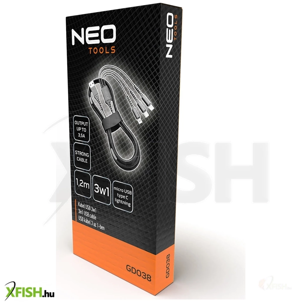 KategóriákKategóriákKiegészítők Egyéb kiegészítők Neotools USB töltőkábel, 3az 1ben, 1.2m, usb-a bemenet, usb-c, lightning, micro USB kimenetek