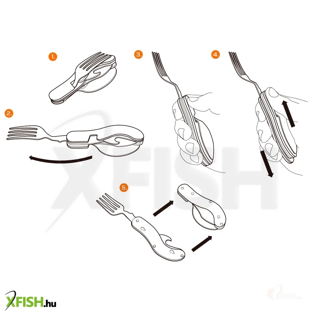 Funkciók: kés, kanál, villa, konzervnyitó, üvegnyitó