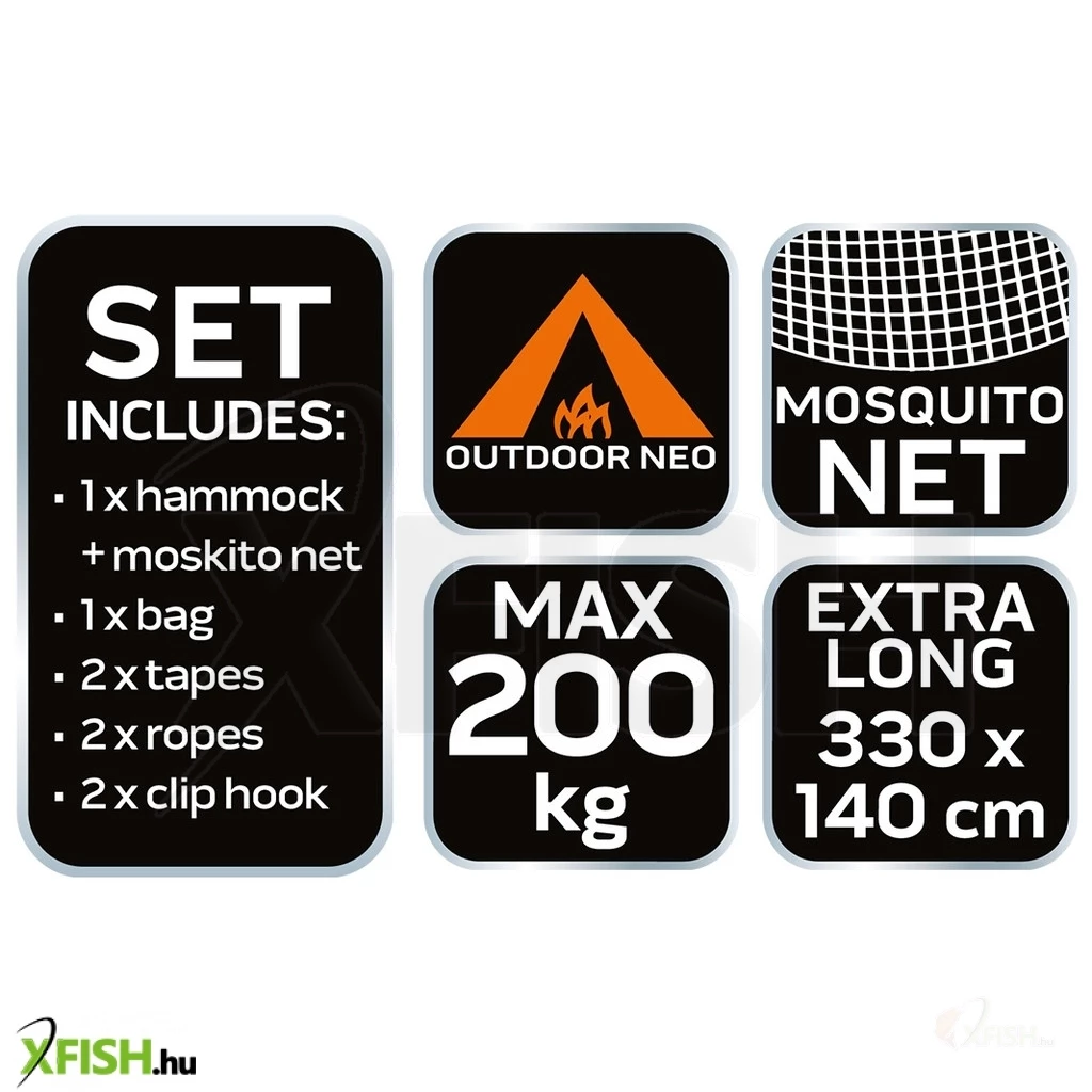 Neotools Függőágy Szúnyoghálóval 330x140cm Max:200Kg