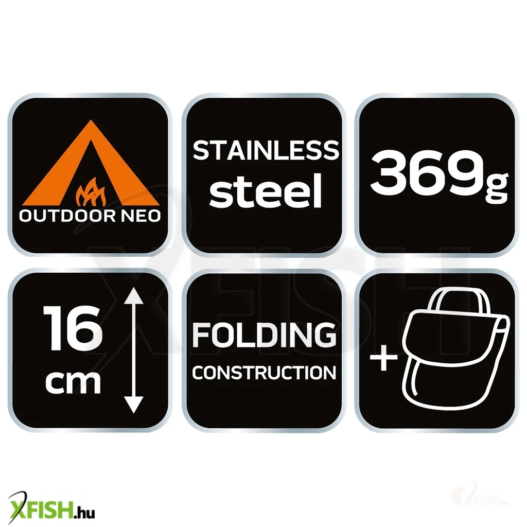 Fedezd fel a szabadságot a Neotools kemping tűzhellyel! Összecsukható, könnyű, rozsdamentes társad kalandjaidhoz. Horgászásnál is gyorsan készíthetsz finom ételeket.