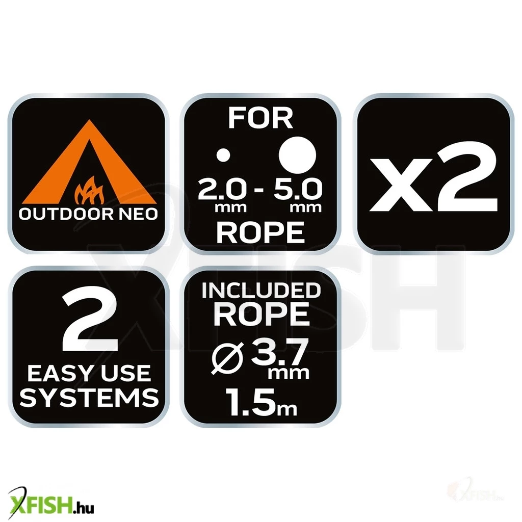 A Neotools kötélfeszítő karabíner robusztus kivitelezésének köszönhetően masszív támogatást nyújt, miközben a rugós mechanizmusa megkönnyíti a gyors és hatékony be- és kiszerelést. A paracord kötél 3,5 mm vastagságával és 1,5 méteres hosszával kiváló szakítószilárdságot biztosít, ami garantálja a stabilitást még zord időjárási körülmények között is. A készletben lévő három darab paracord és karabíner kombinációja pedig maximális variabilitást tesz lehetővé, alkalmazkodva a különféle sátorfelállítási igényekhez.