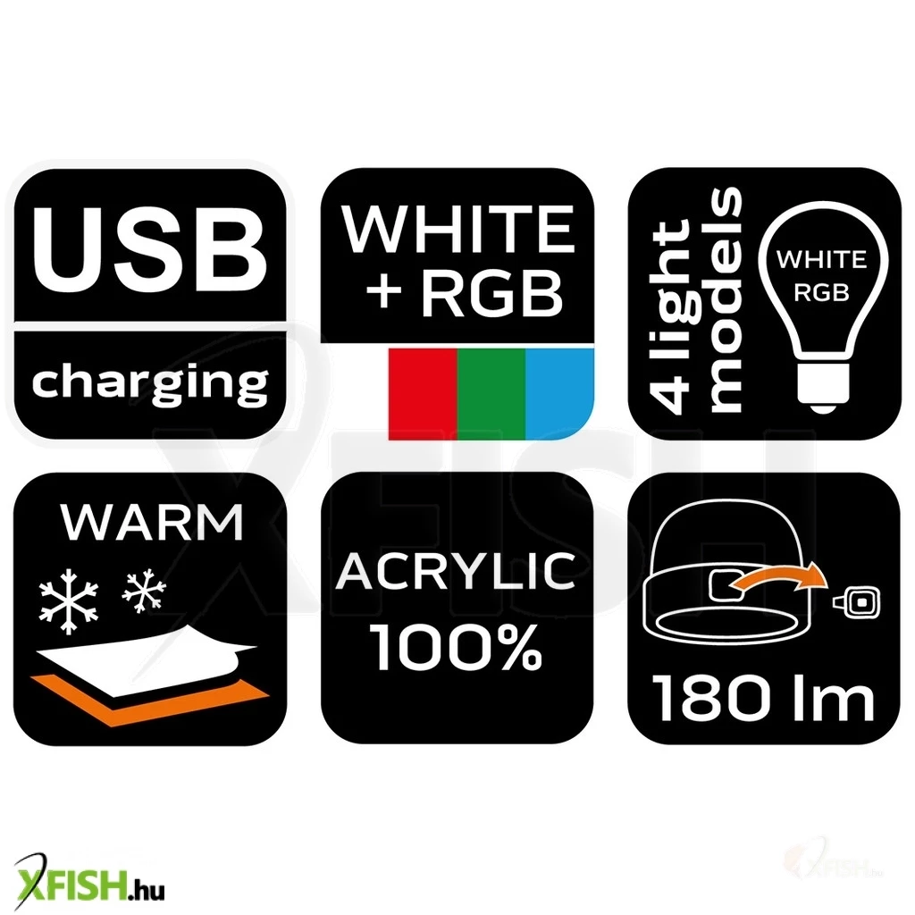 A sapka igazán különlegessé a beépített LED-es zseblámpa teszi, amely négy világítási módot kínál: közepes és erős fehér fényt, valamint RGB effekteket, amelyek 6 színforgatást és villódzást tesznek lehetővé. Ezek a funkciók különösen hasznosak a sötétedés utáni láthatóság javításában, így bármilyen esti szabadtéri tevékenységet biztonságosan élvezhet a viselője.