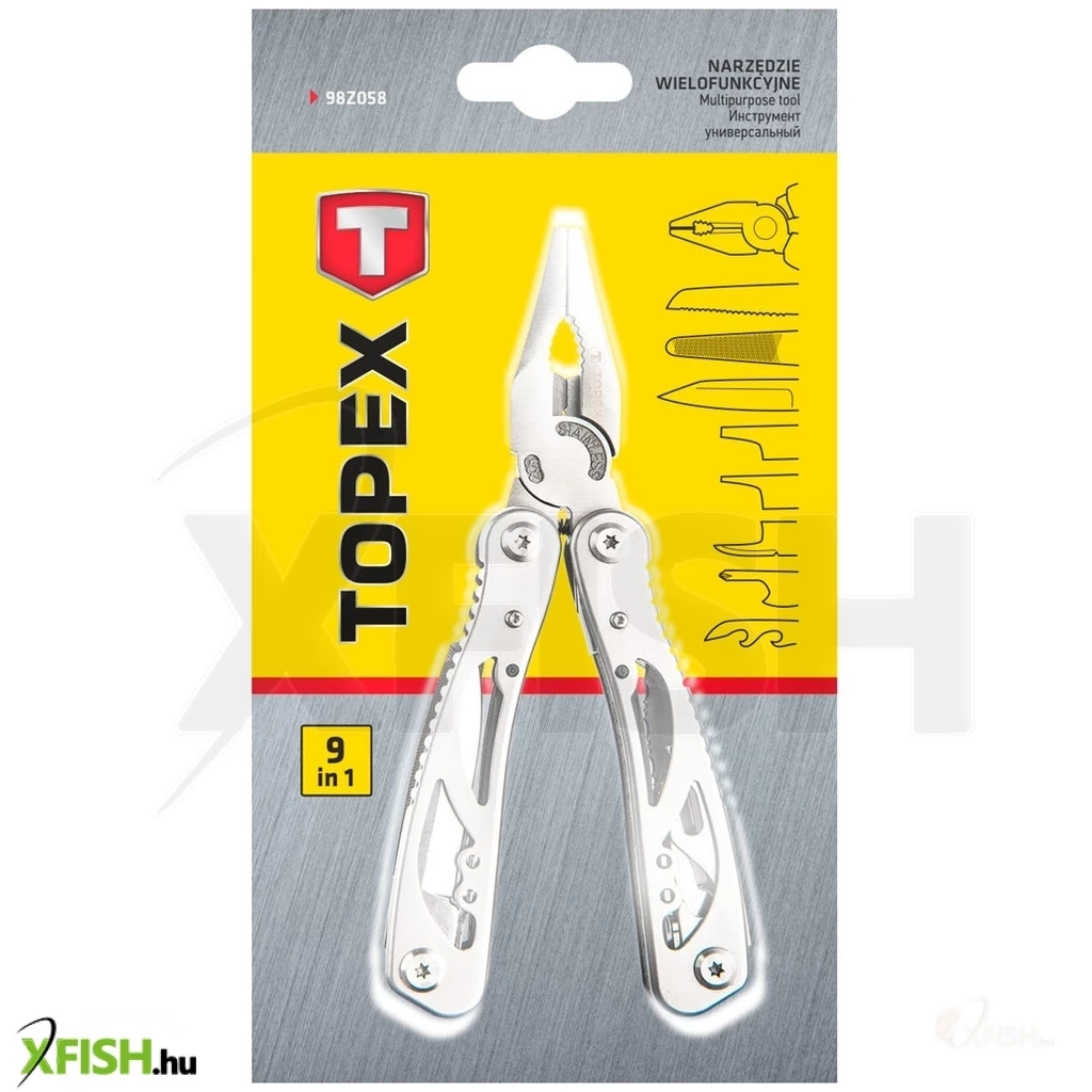 Többfunkciós szerszám, rozsdamentes acél test, 420-as rozsdamentes penge, fogó, lapos penge, fafűrész, reszelő, konzerv- és sörnyitó, két SL csavarhúzó, PH csavarhúzó, nyárs, súlya 222 g, hossza zárt állapotban 105 mm, hossza nyitva 165 mm, szövet tok