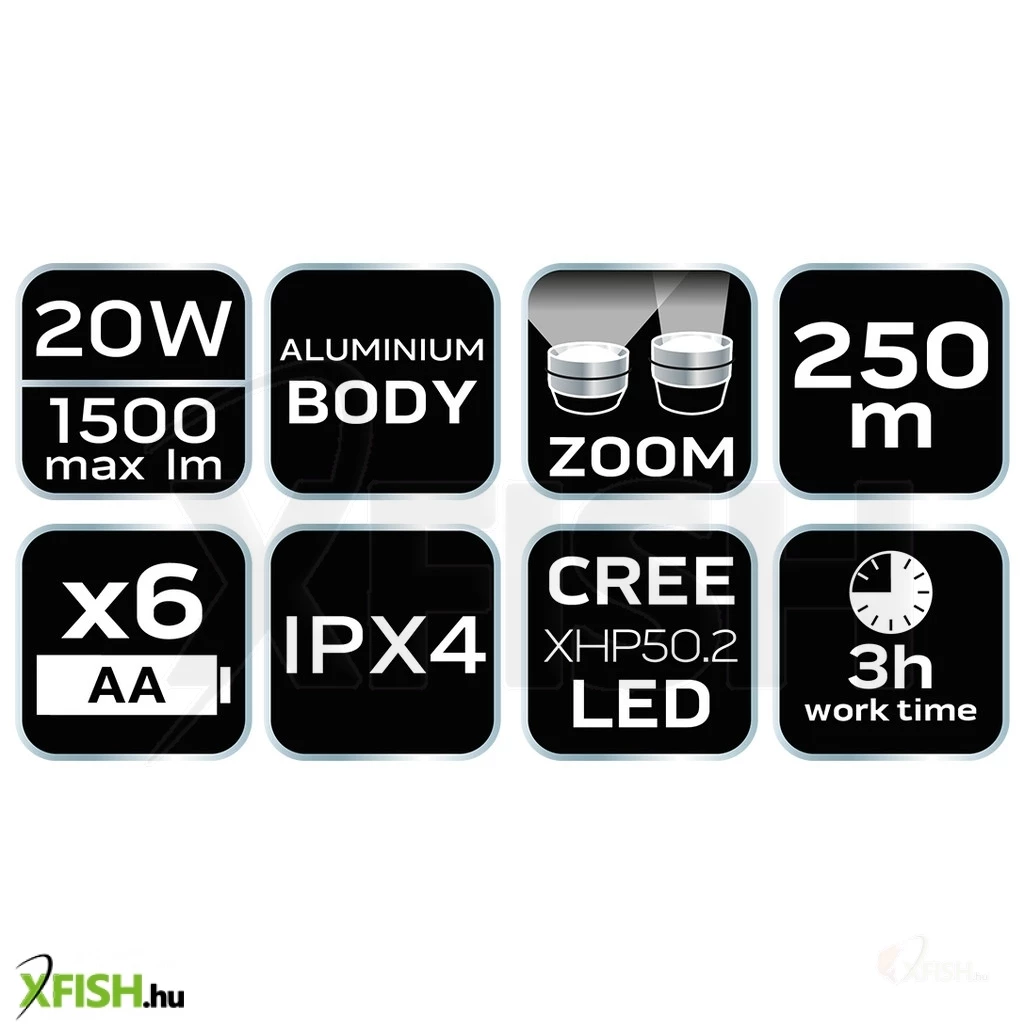 A zseblámpa központi eleme a CREE XHP50.2 LED, amely lenyűgöző, 1500 lumen fényerő biztosítására képes. Ez az erőteljes LED technológia 20 W teljesítménnyel rendelkezik, amely könnyedén világít meg bármilyen környezetet, legyen az sötét alagút vagy egy éjszakai kempingkaland. A lámpa három különböző világítási funkcióval bír, amelyek közé tartozik a teljes 100% fényerő, a 20% energiatakarékos üzemmód, valamint a stroboszkóp, amely kiválóan alkalmas vészhelyzetekben vagy figyelemfelkeltésre.