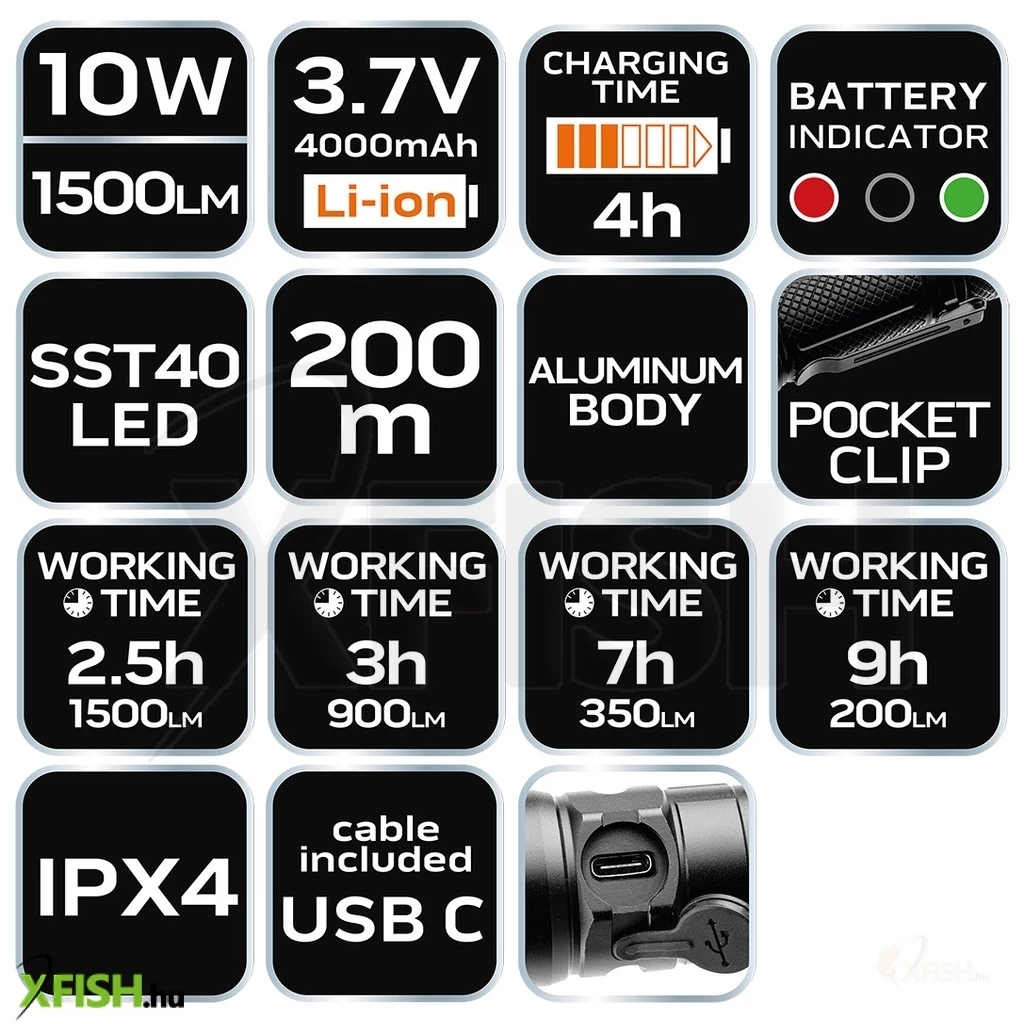 ![]() | Neotools Tölthető Horgász Zseblámpa 1500 Lumen Jellemzők: Zseblámpa