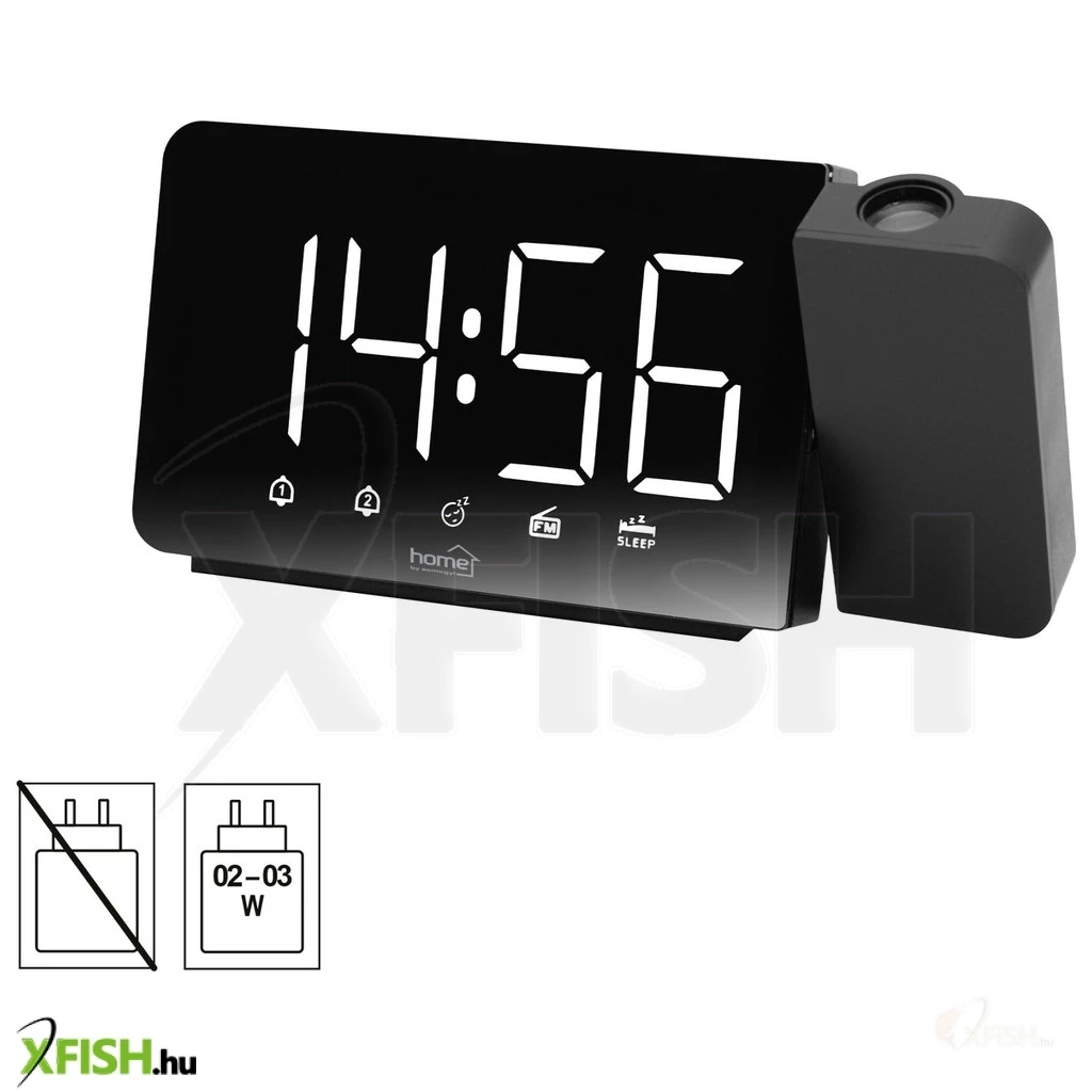 Home ltcrp03 rádiós LED ébresztőóra projektorral, változtatható fényerő, körbe forgatható vetítési pozíció, két ébresztési idő, FM rádió, bip-bip vagy rádiós ébresztés