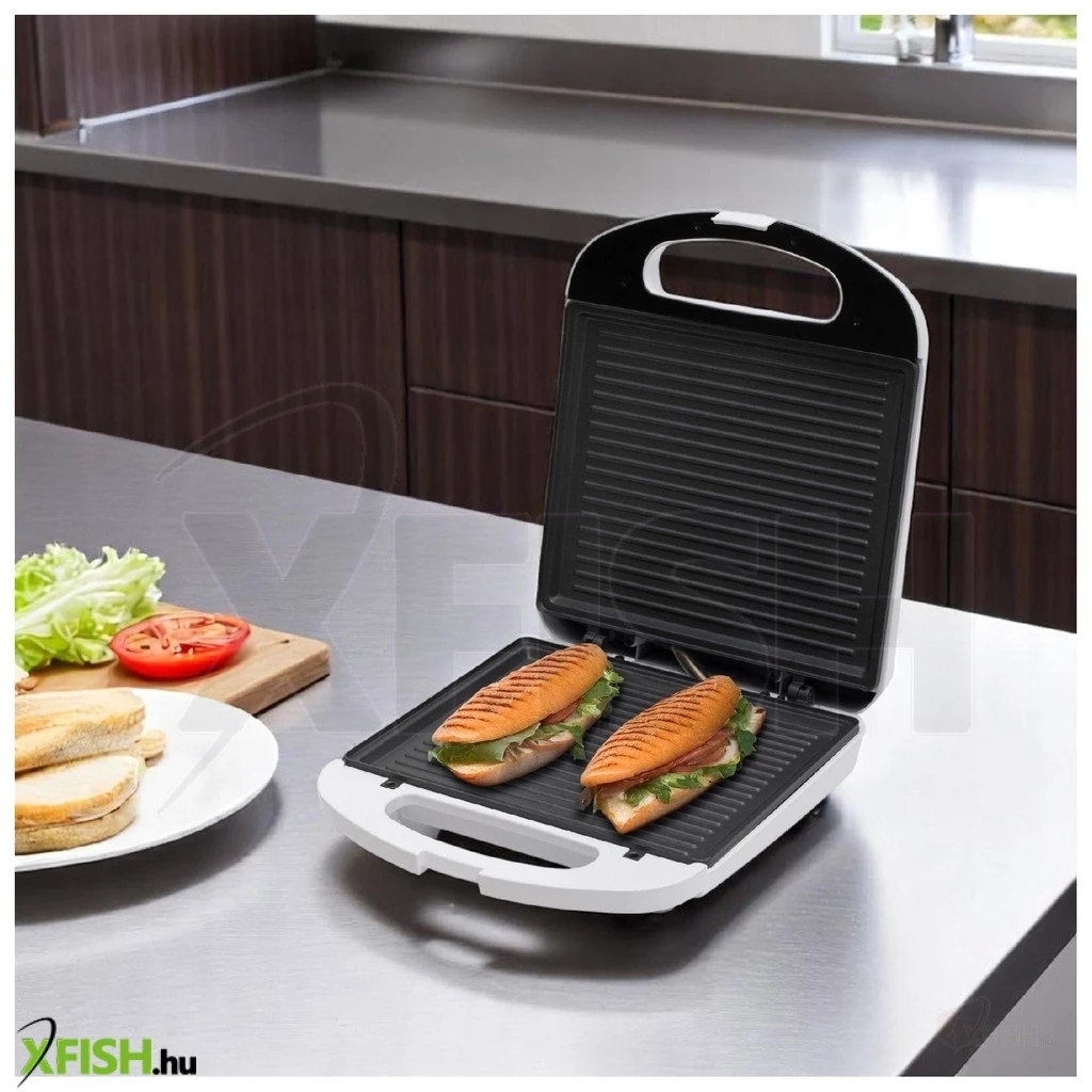 A készülék 1200 wattos teljesítménye biztosítja a gyors felmelegedést és a hatékony sütést, így a szendvicsek belül puhák, kívül pedig ropogósak lesznek. A 20,5 × 24 cm-es nagyméretű sütőfelület lehetővé teszi akár két nagy szendvics egyidejű elkészítését, ami ideális választás családi reggelikhez vagy vendégváráshoz.