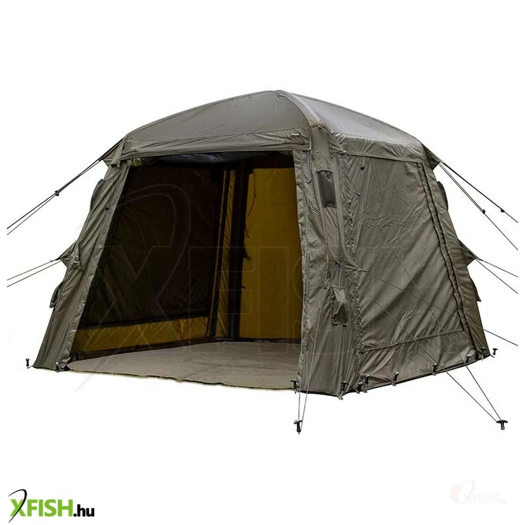Egy teljesen felfújható kerettel rendelkező közösség sátor, amelyet úgy terveztünk meg, hogy sokkal nagyobb igénybevételt bírjon ki, mint a hagyományos keretekkel rendelkező társak. A gyorsan felállítható, felfújható csőrendszer lehetővé teszi a keret egyszerű felfújását és rögzítést. Tartós Fox Khaki 8000mm-es víznyomásnak ellenálló, poliészter szövetből készül, ez a sátor optimális nap- és hővédelmet nyújt a tetőpanelen található "Black Out" laminált betétnek köszönhetően. Sokoldalú felhasználás, teljesen levehető ajtó- és oldalpanelekkel, több ablakopcióval és egy hátsó bejárattal, amely felhasználható egy sátor vagy brolly bővítéseként. Dupla irányú pumpával és intelligens kötél rendszerrel szállítva ez a sátor bármilyen időjárási körülmények között megbízhatóan használható.