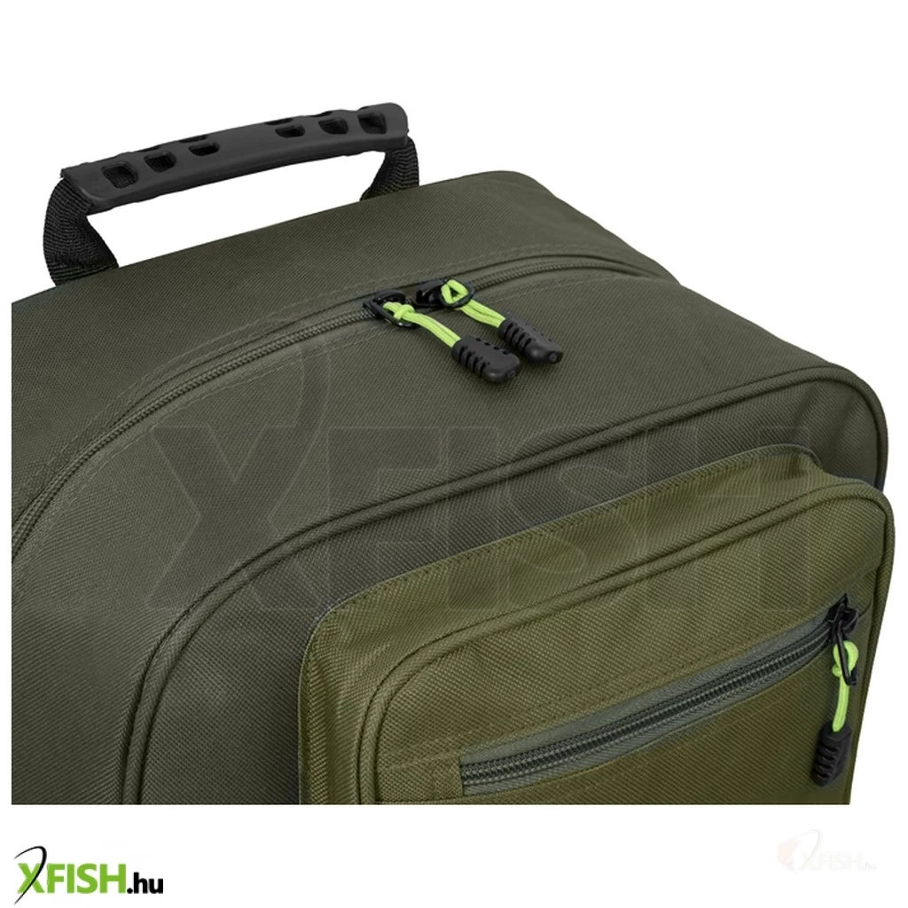 Az átgondolt kialakítás egy nagy főrekeszre és két elülső zsebre osztja a rendelkezésre álló helyet. A fő rekesz bőséges teret nyújt ruházat és horgászkiegészítők számára, és megerősített elválasztóval is fel van szerelve.
