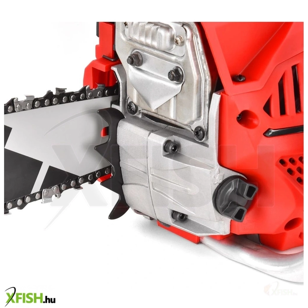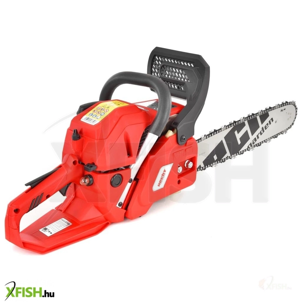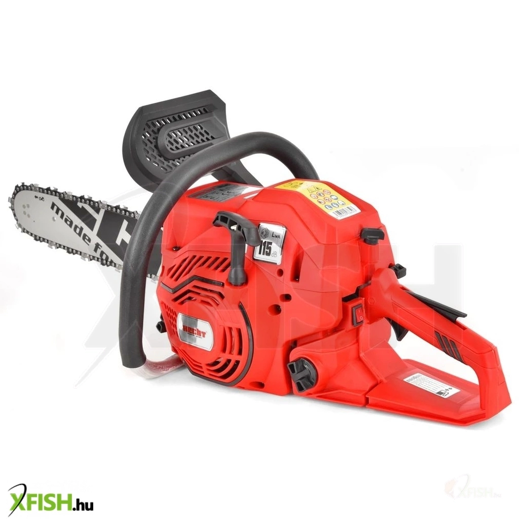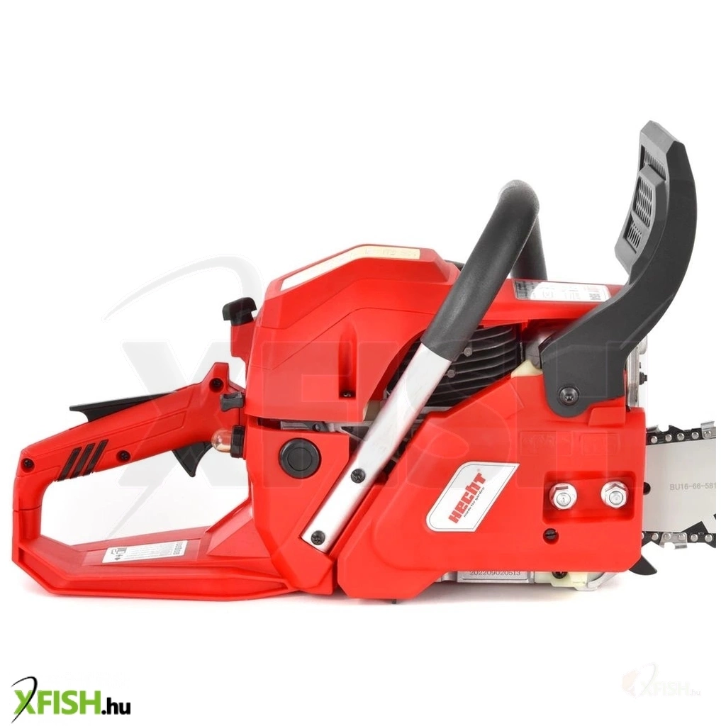 Benzines láncfűrész 53,2 cm3 lökettérfogattal. 2,7 LE-s kétütemű motor. A fűrészt egy 40 cm hosszú Hecht láncvezetővel és egy 0,325" / 1,5 mm-es lánccal szállítjuk, 66 láncszemmel. A lánc típusjelzése Hecht 25Q66E. A lánc és a láncvezető kenését a vágás során automatikusan a fűrészbe integrált tartályból származó szivattyú biztosítja. A lánc sebessége 21,8 m/s.